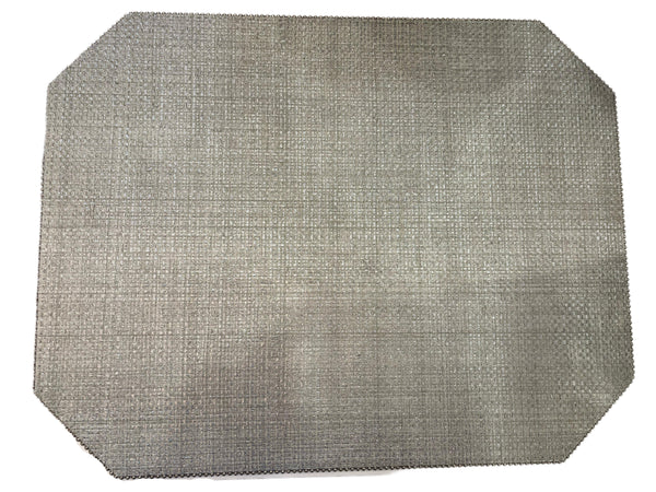 Metallic - Cut Corner Rectangle Placemat Reversible Raffia Silver Sage / Woven Sisal Stone Path