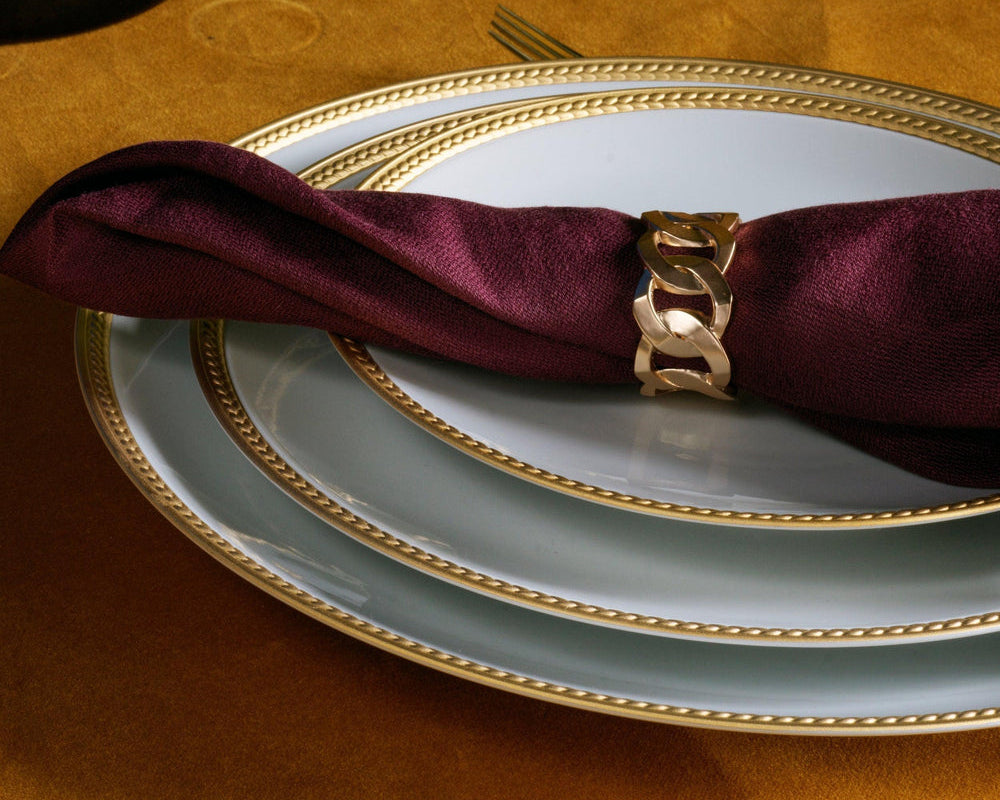 Soie Tressée, French for "Silk Braid," is a modern expression of a timeless classic and offers a contemporary look on an ancient shape. Made of porcelain, this dinnerware collection is beautifully accentuated with hand-gilded 24k gold braids. Please Allow 08 to 10 Days for Shipping.