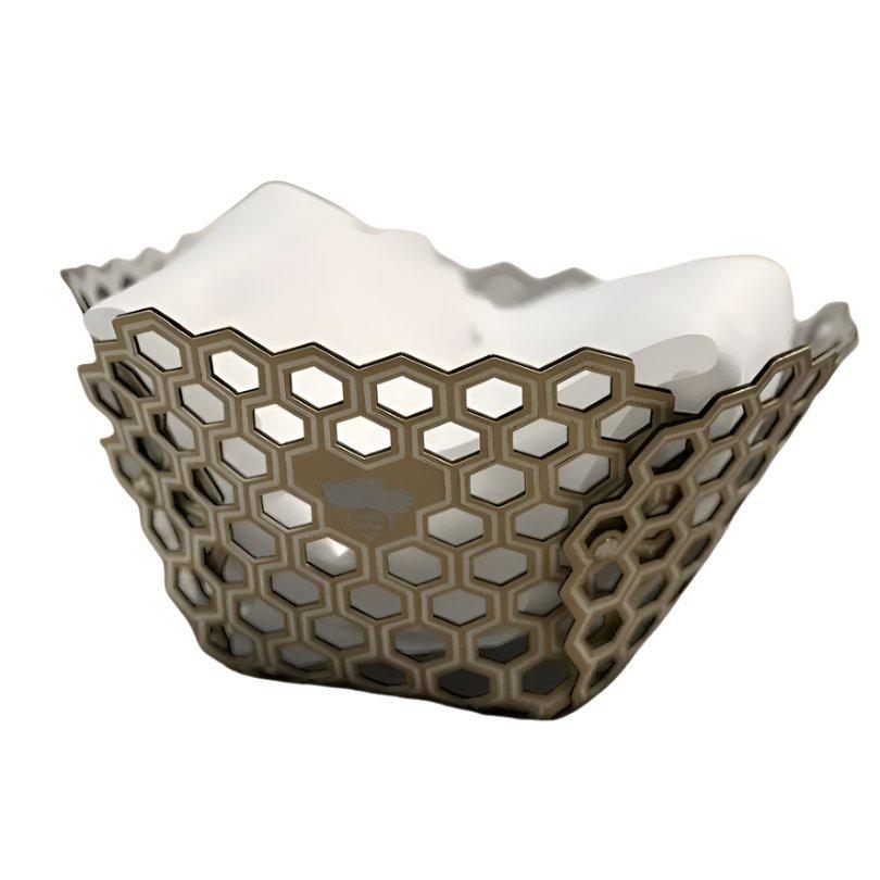 Double-sided bread basket unit with cloth napkin. Material: Synthetic fabric. Care: Clean with a damp cloth.