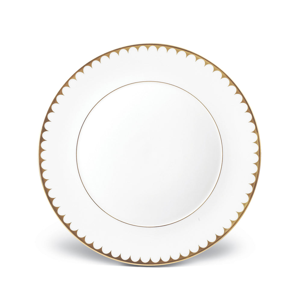 Mirroring the waves of its namesake sea, the Aegean Filet dinner plate features a timeless pattern of scales in a delicately scalloped border