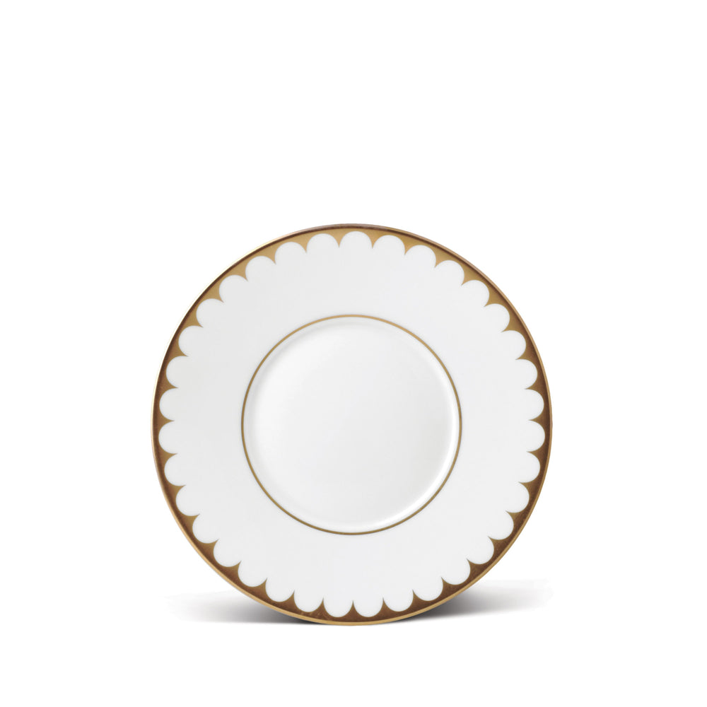 Mirroring the waves of its namesake sea, the Aegean Filet saucer features a timeless pattern of scales in a delicately scalloped border, hand-applied in 24K gold. Pairs beautifully with a tea cup from the Aegean collection.