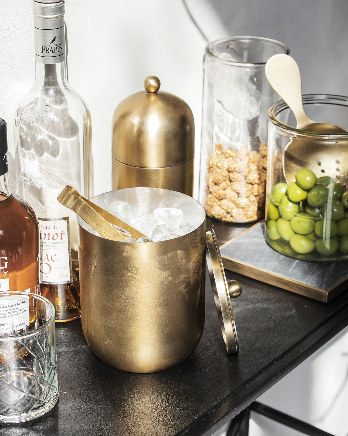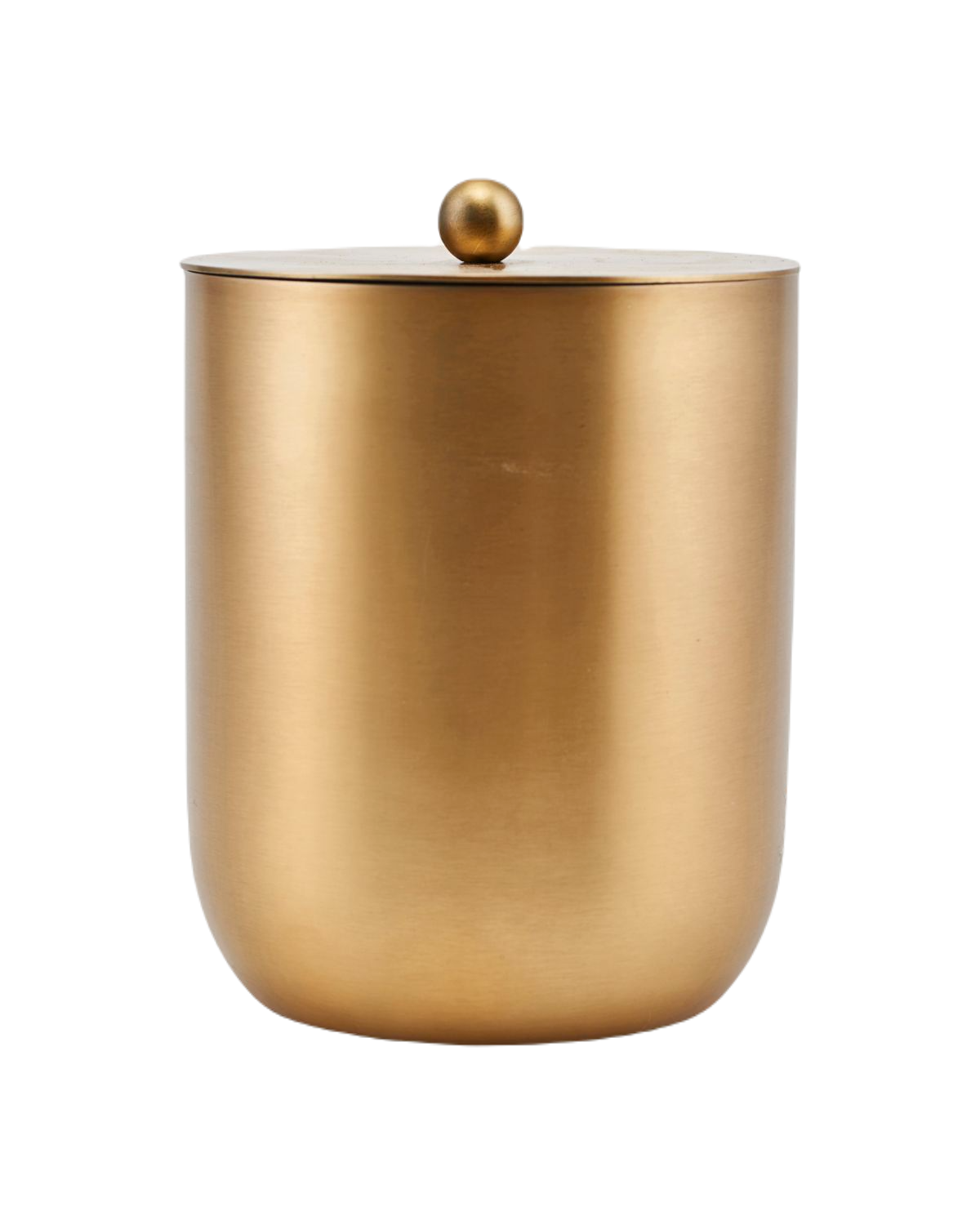 Welcome your guests with a glass of cold white wine. With this beautiful wine cooler from House Doctor that is called Alir, you can keep your wine cool longer, while also using it as a decorative item on the table. The wine cooler is made of stainless steel and brass, which makes it a beautiful addition to the Nordic-inspired home. Alir can also be used to keep ice cubes cold as a lid is included. The ice/wine cooler measures 12 cm in diameter and has a height of 14,5 cm.