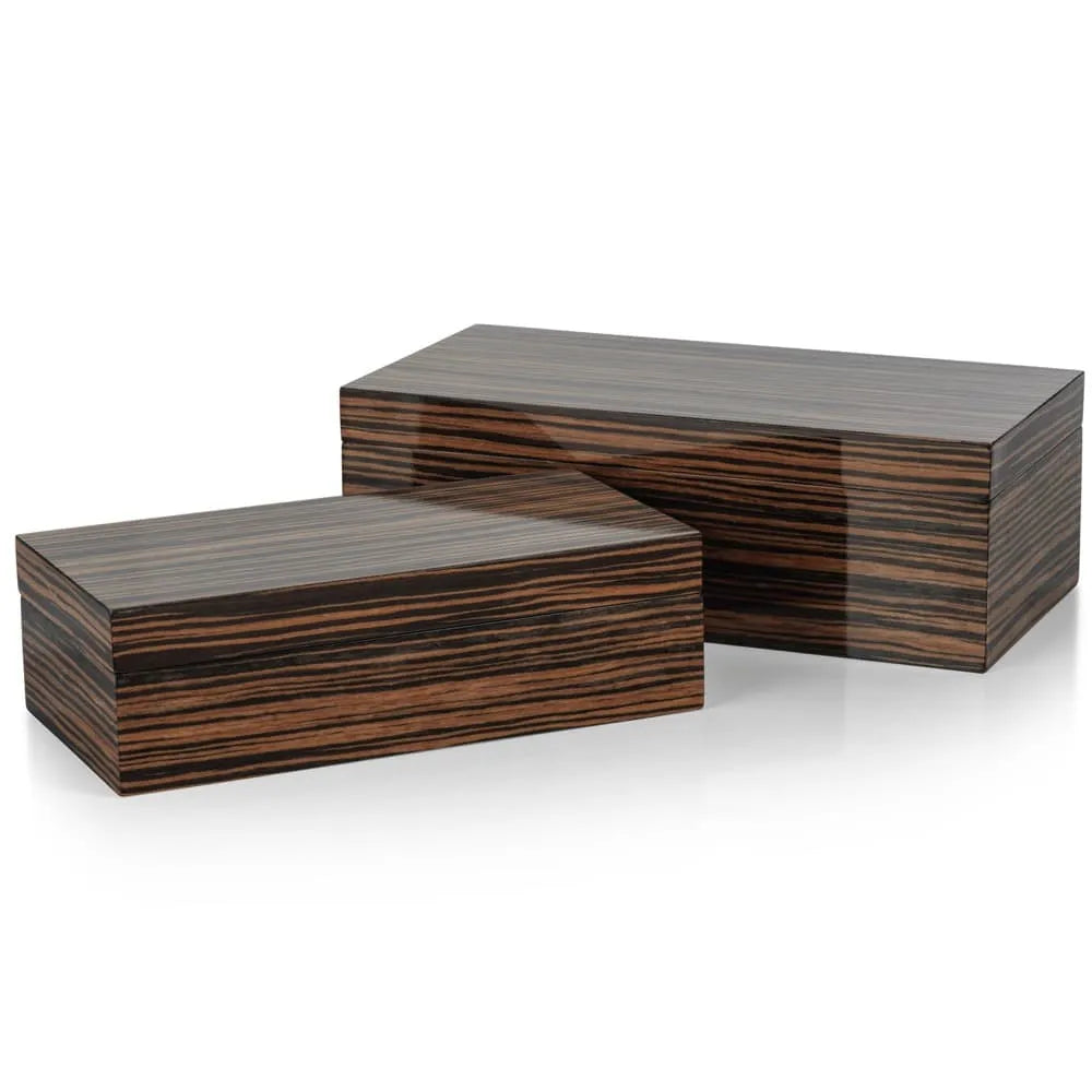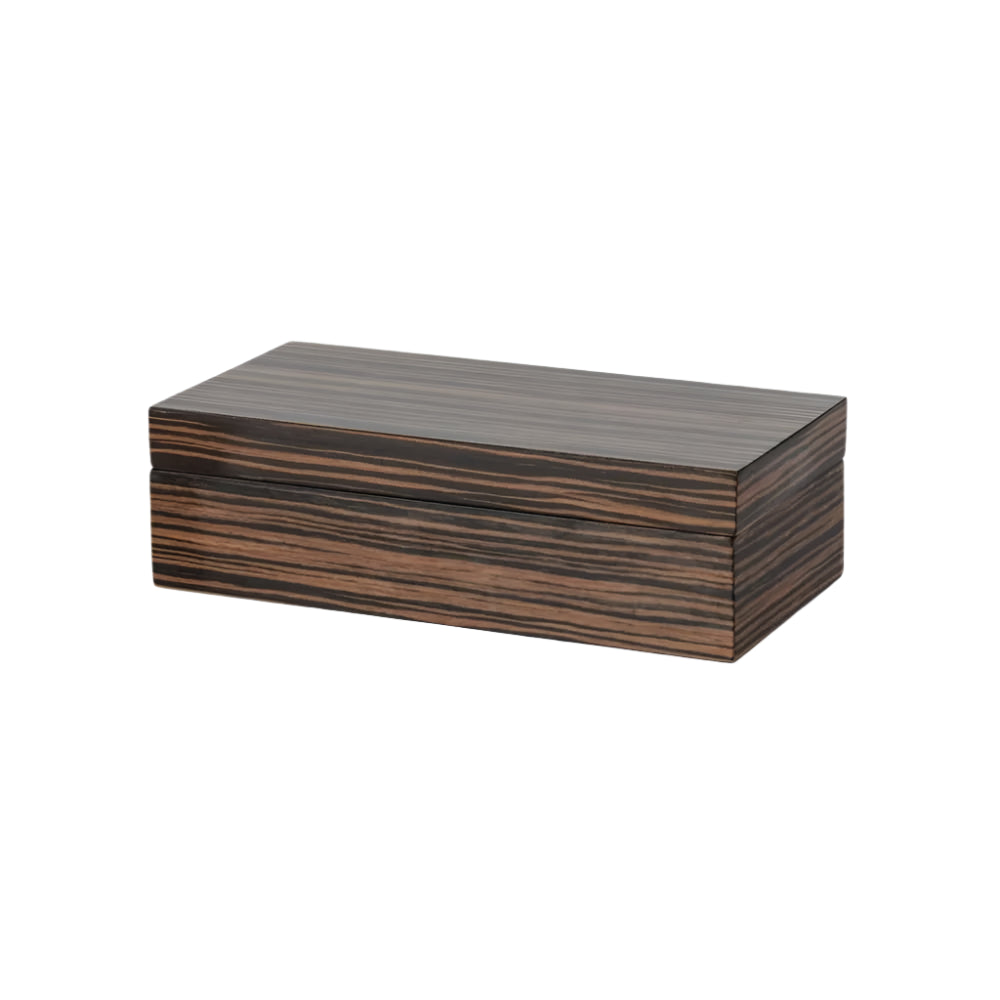 Store jewelry and other accessories in these stunning boxes, which bring the distinct and dramatic appearance of ebony wood to the modern home.
