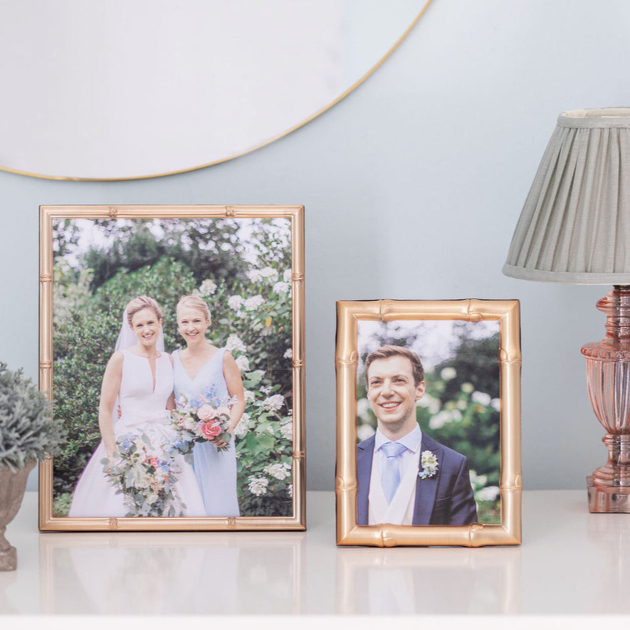 This slender bamboo matte gold photo frame is inspired by the latest interior design trends and is a very stylish modern classic. The bamboo design is a long established best selling frame