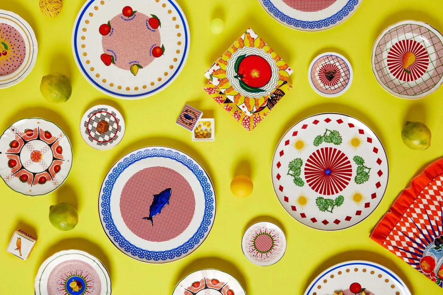 The Citrus Serving Plate with Gold Detailing by Bitossi Home is made of porcelain painted with the decal technique. It is part of the Bel Paese collection signed by the French designer Sam Baron.