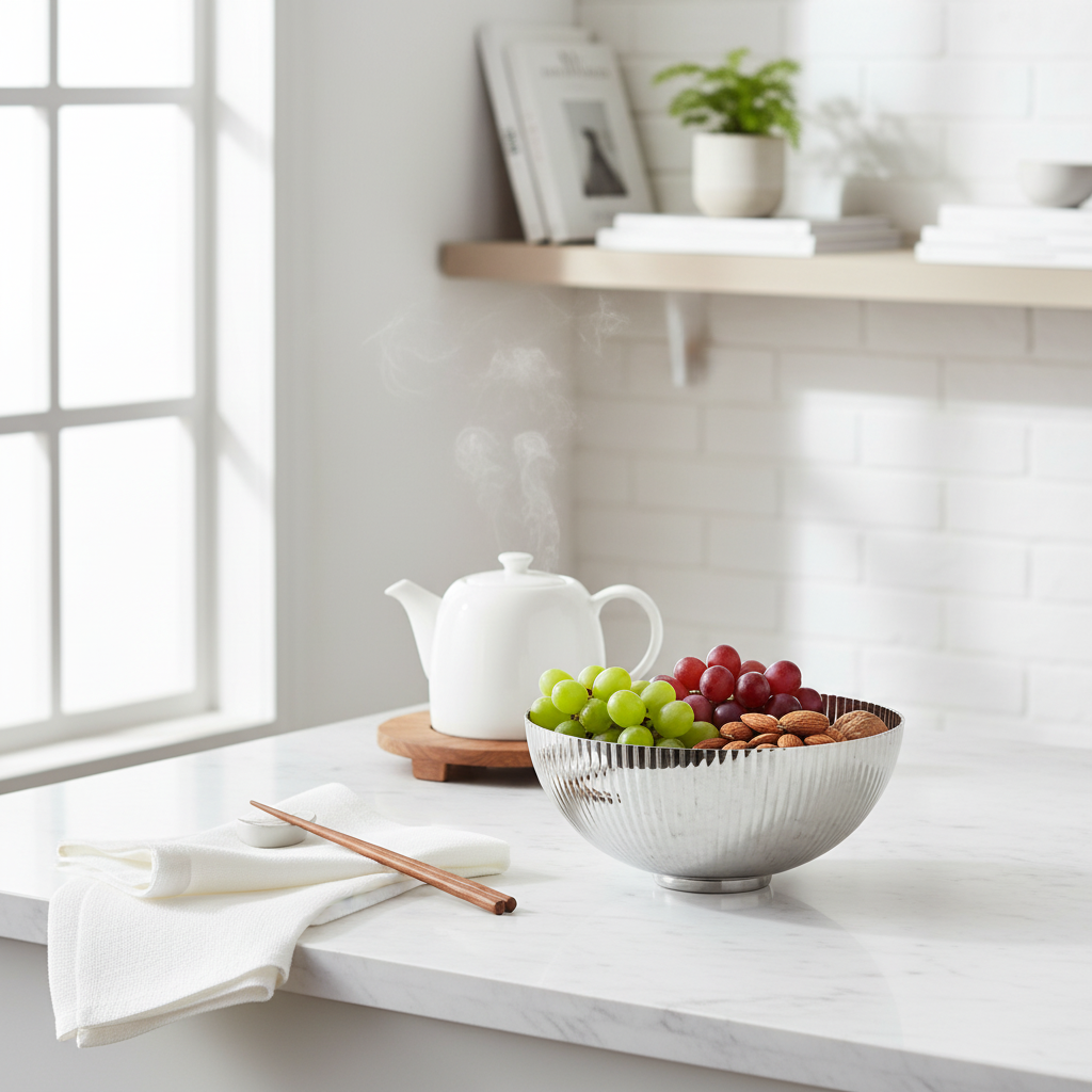 Bring an element of classic Scandinavian design to your table top with this small decorative bowl. The elegant ridged surface was inspired by designer Sigvard Bernadotte’s original silver pieces created in the 1930s but is given a new, modern appeal when translated into stainless steel.