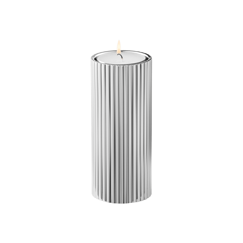 The candleholder is artfully crafted from stainless steel with a mirror-polished finish. It stands 110 mm high.