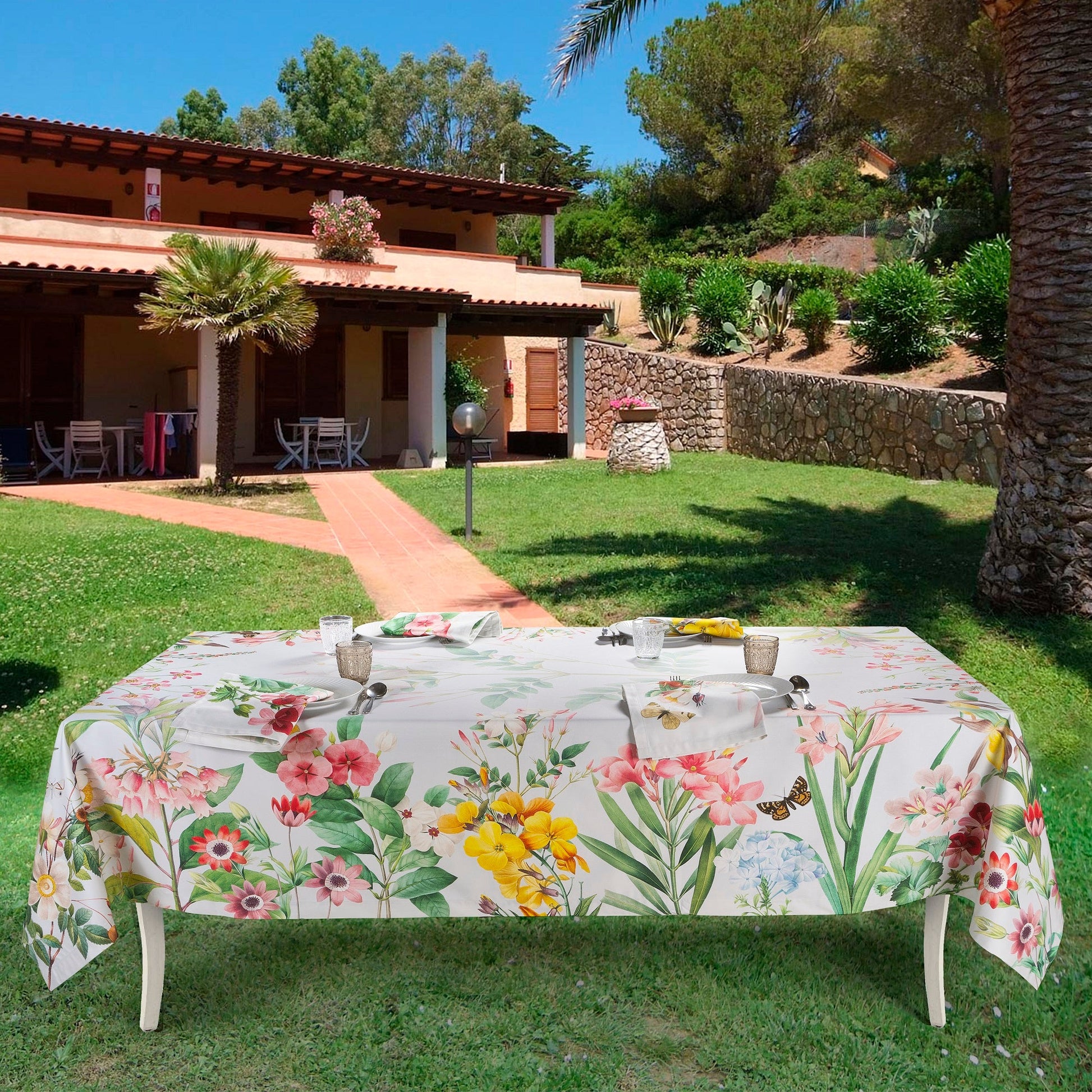 Tablecloths with flowery pattern, on pure cotton Satin fabric.