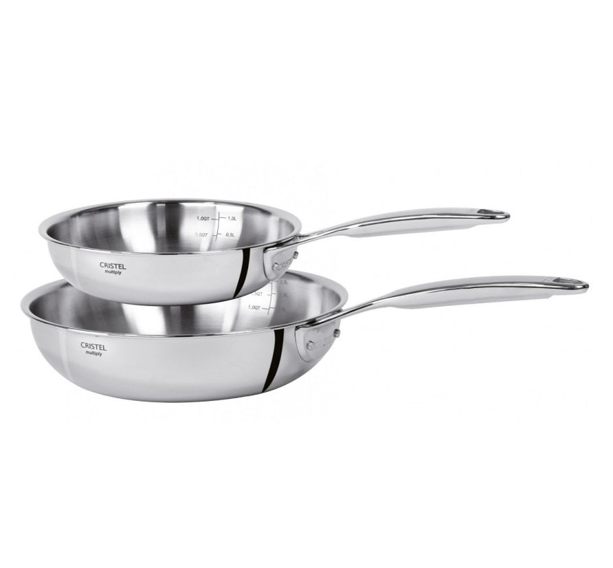 Castel'Pro 5-ply stainless steel pan, glossy mirror finish with 5-layer thermo-diffuser base, fixed cast iron handle. Internal graduations. The 5 superimposed layers: stainless steel 18/10 + 3 layers of aluminum + stainless Castel'Pro stoves allow a homogeneous distribution of heat throughout the body of the cooking utensil and not only at the bottom thermo-diffuser. The absence of a bottom report justifies a speed of rise and fall of the temperature and facilitates the cooking of the most technical devices. The unique round shape of the body of the utensil is ideal for mixing, sautéing and cooking. The 5-layer Castel'Pro Stoves preserve the taste qualities of food and are easy to clean after cooking. The athermic solid stainless steel handle, perfectly linked to the body of the pan thanks to the stainless steel rivets, does not retain the heat on a ceramic hob.