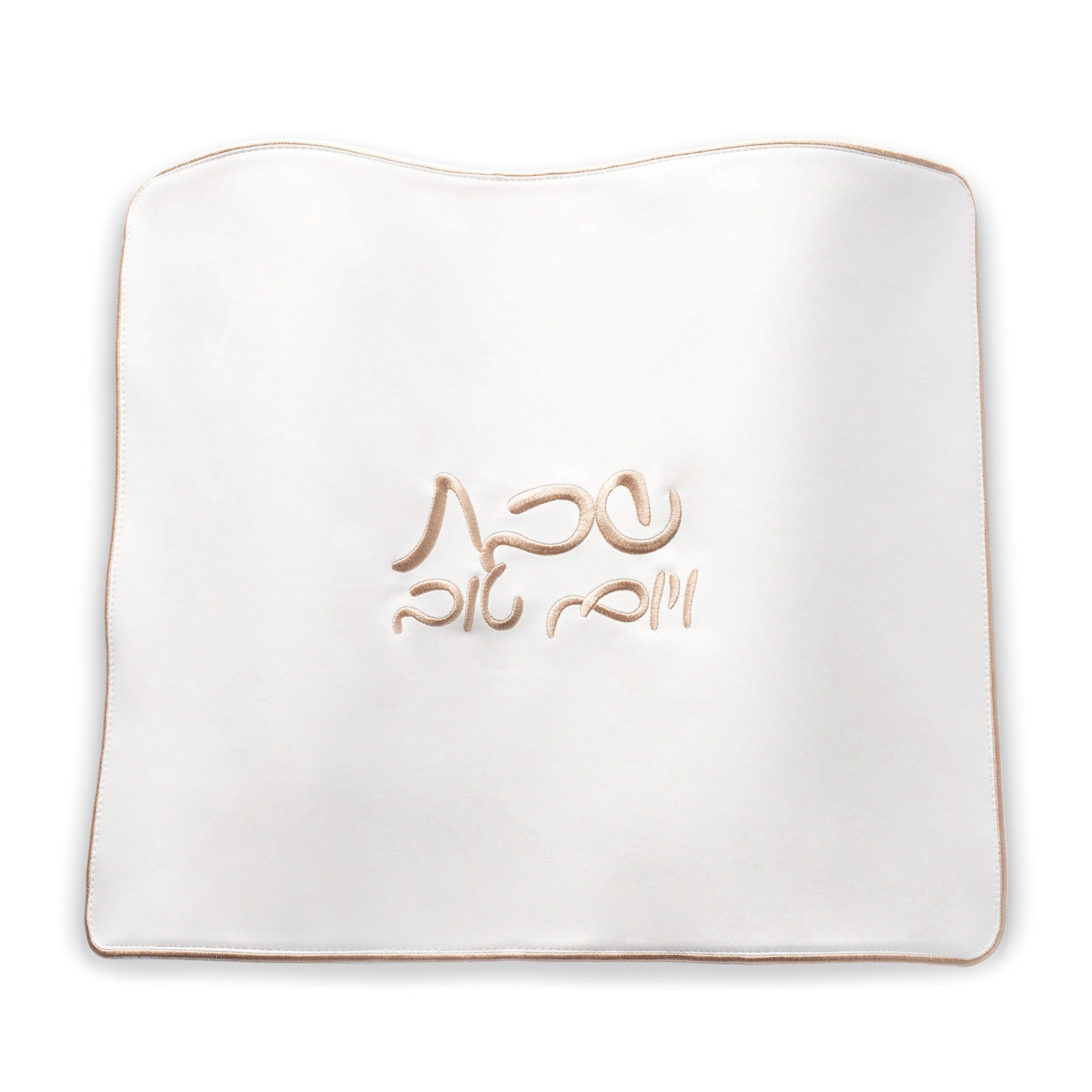 This magnificent Leather Challah Cover will make a striking addition to your Shabbos table. Unique design looks gorgeous when laid on top of Challahs. Features white leather with a classic line border. Premium quality & feel! Both practical and beautiful, this Challah cover would make a great gift.