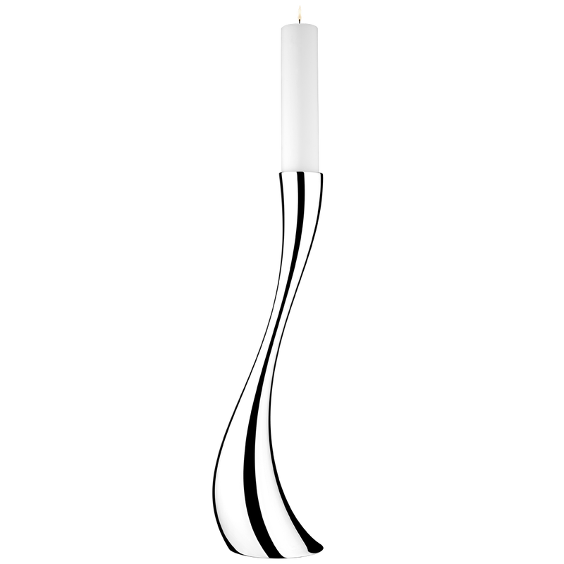 The famous and ever popular Cobra candleholder grows up! The original table version has become a spectacular floor candleholder, guaranteed to add a strong design element to any living space. The same sensuous curves and weightless movement are here, just in a larger and more robust version. Great on its own, fantastic in a group, the floor candleholder makes a definite statement.