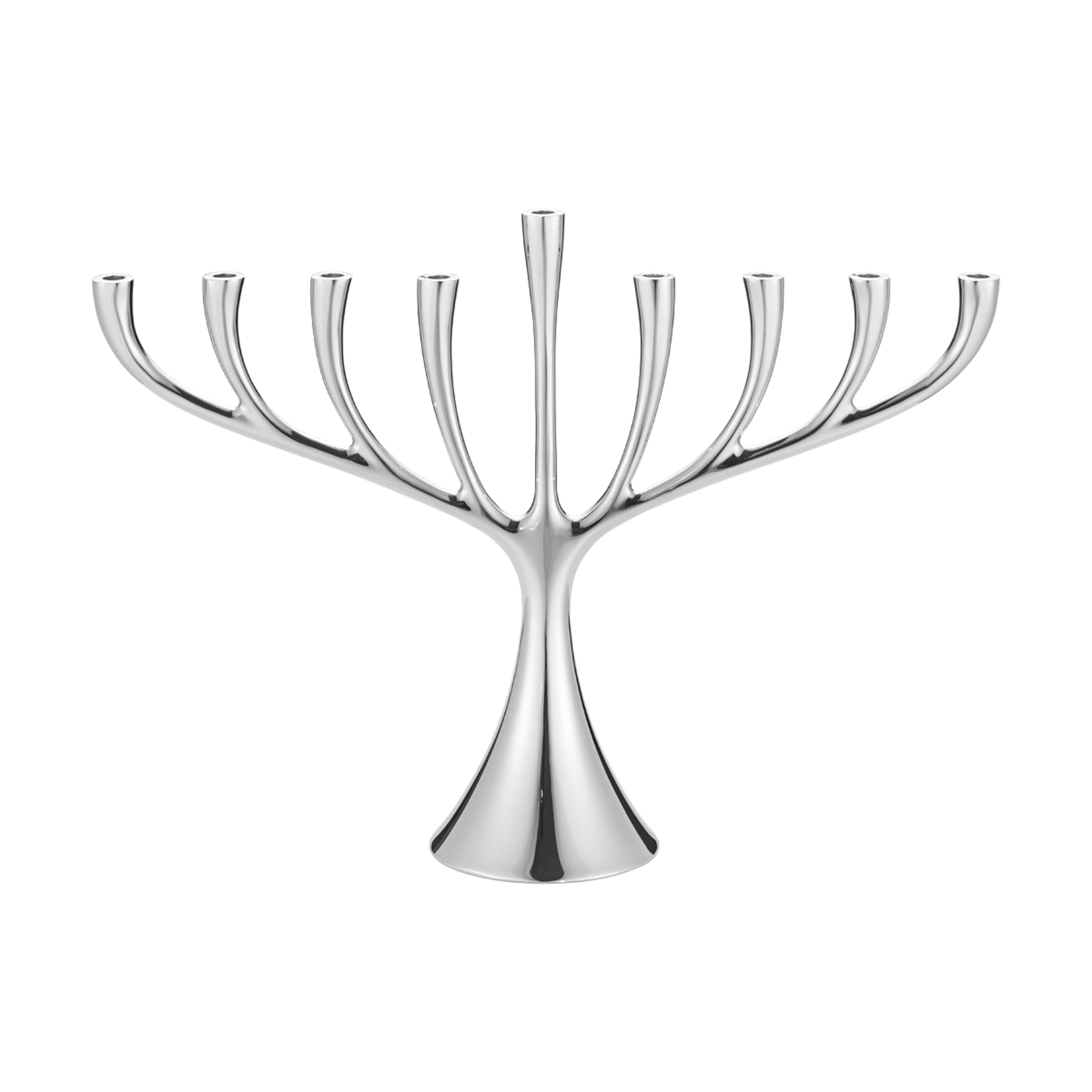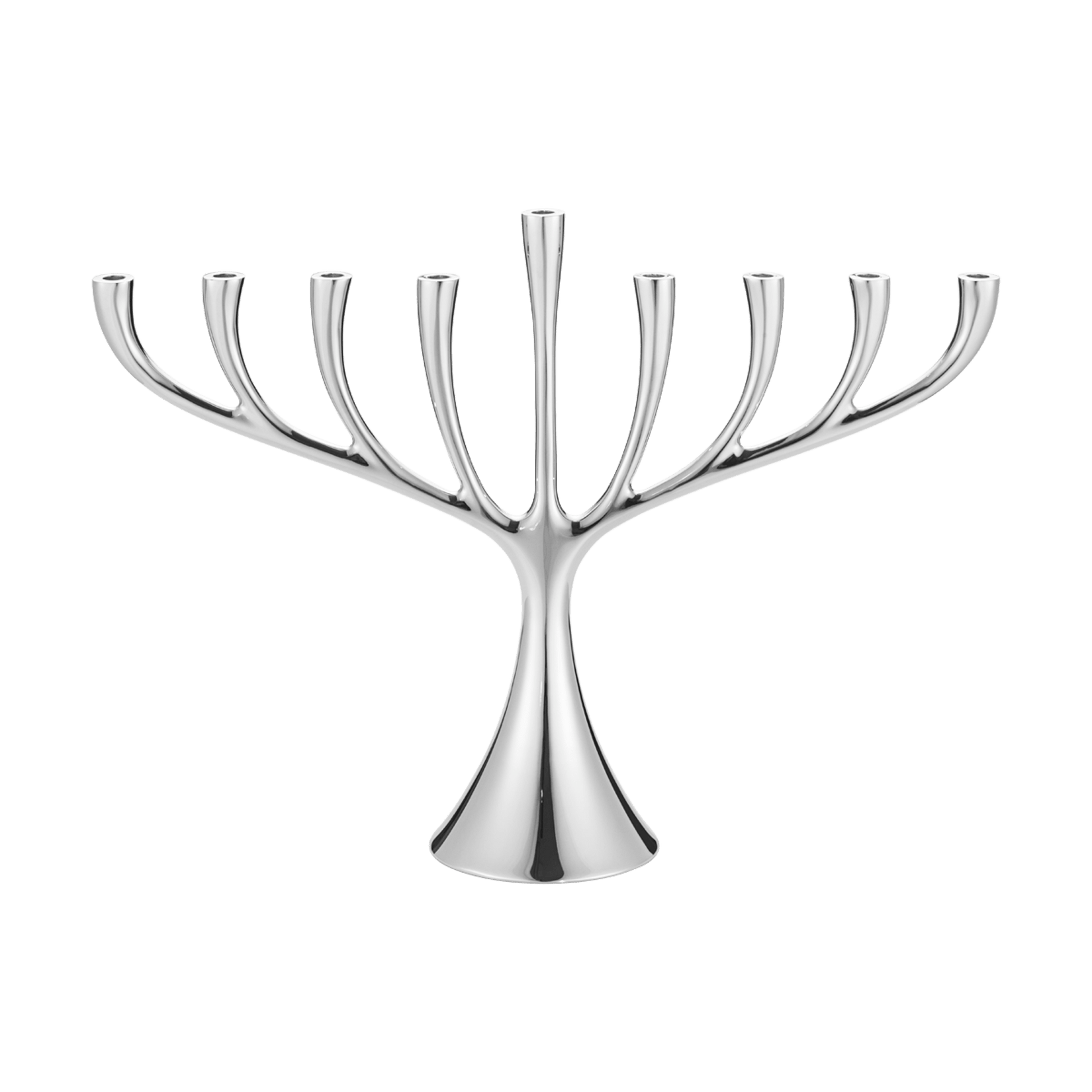 The menorah is artfully crafted from mirror-polished stainless steel and holds candles of Ø9 mm.