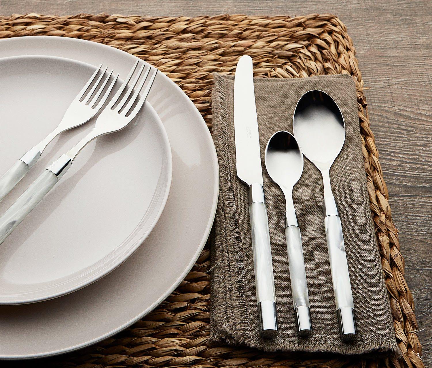With its cylindrical design, Conty White makes a bold statement. Like its namesake village in Northern France, this flatware collection conveys elegance and character. Chrome elements in the resin handle further corroborate the contemporary charm of our collection. Our Conty flatware collection will complement and set a striking table