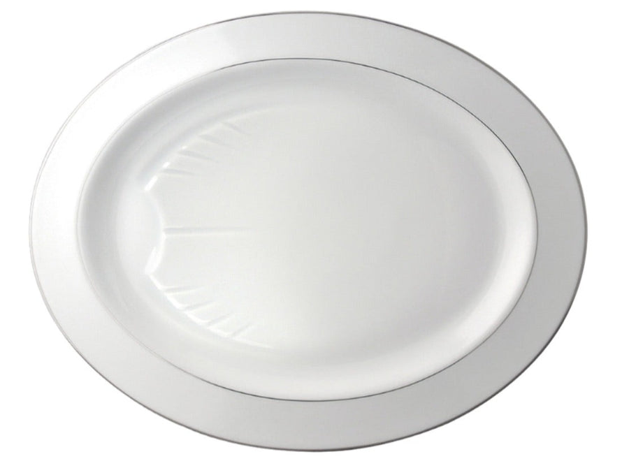 To present and serve roasts and grilled fish, the 43 cm oval platter has a recessed engraving designed to collect the juices or to accommodate a sauce.