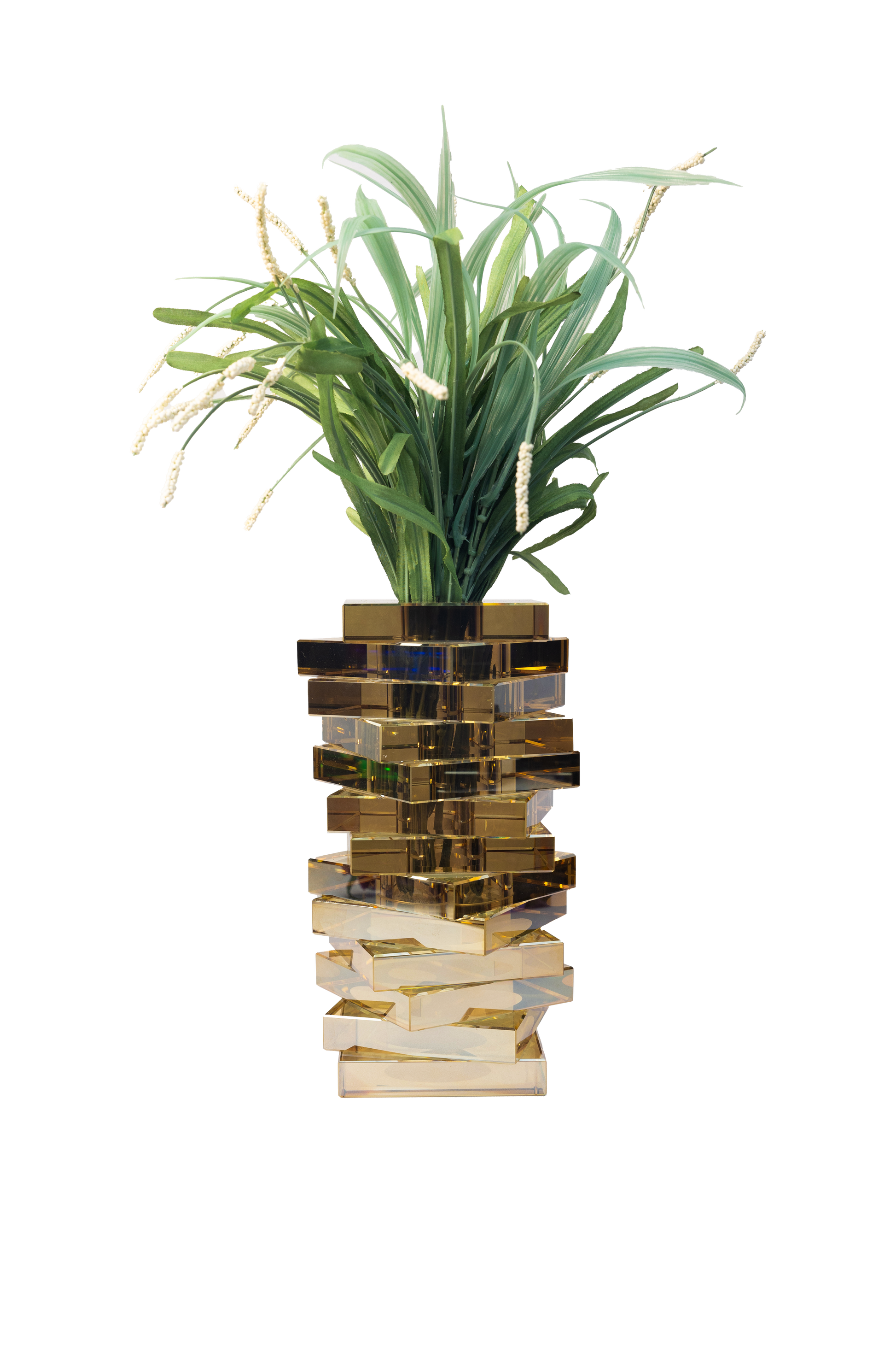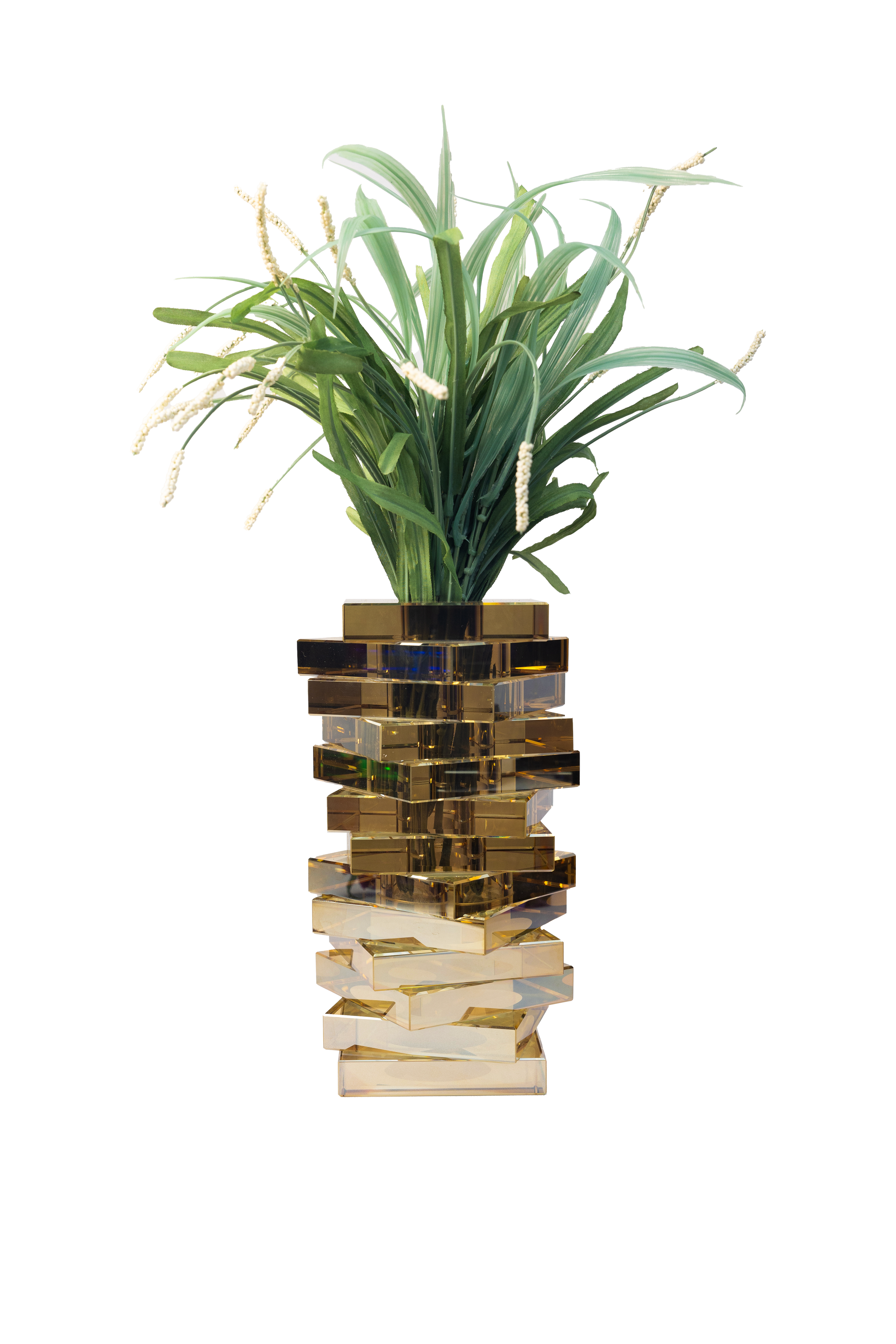 Introducing the Jenga Vase, a stunning crystal masterpiece designed to elevate your decor with timeless elegance. This versatile vase stands out effortlessly as a solo statement piece or adorned with your favorite flowers, adding a touch of sophistication to any space.
