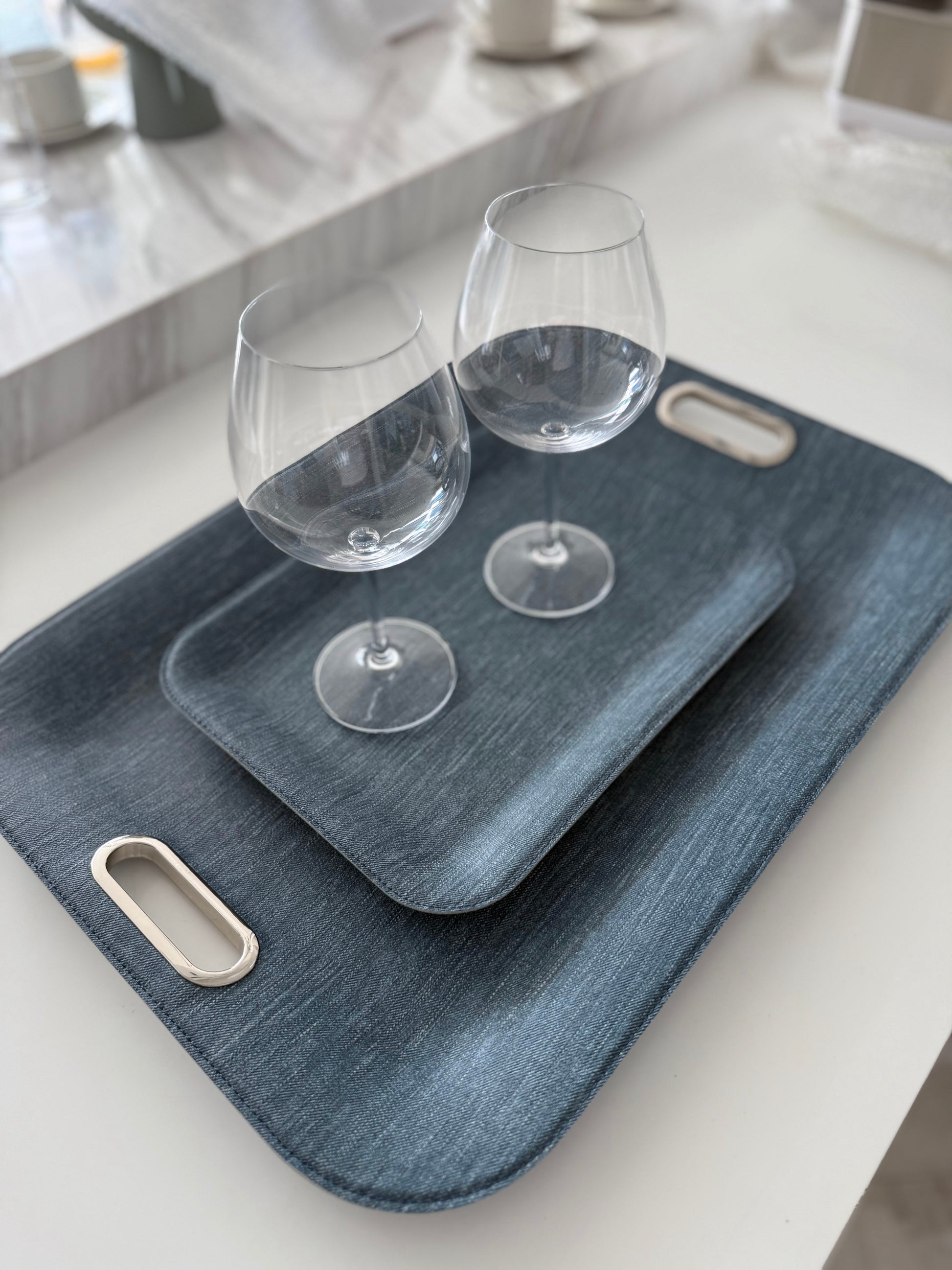 Our tray collection combines the appearance of cloth with the practicality of vinyl. It's super easy to clean, stain-resistant, durable, and strong. Despite its robust nature, it remains lightweight and easy to carry, making it a versatile and convenient choice for various uses.