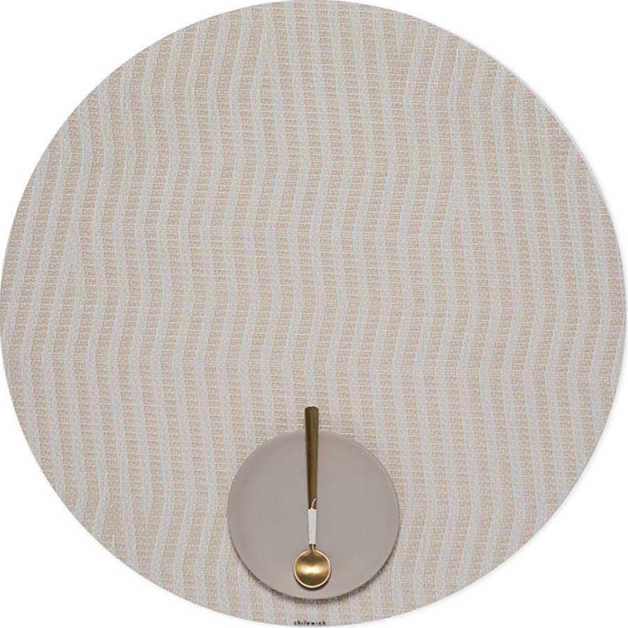 Tonal hues and softened angles bring a calming character to Dune, named for its resemblance to lines etched in sand. The Chilewich design team combined multiple weave structures to achieve an especially tactile surface, with meandering stripes of varying heights. The large scale of Dune's repeat makes each placemat unique.