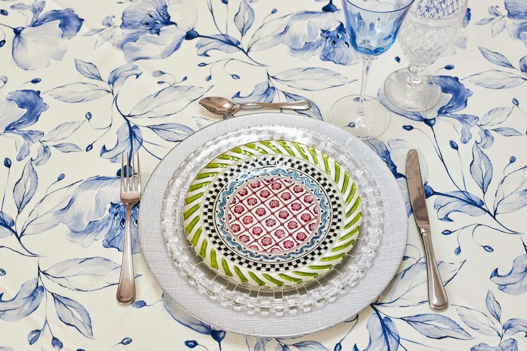 The tablecloths are made of 100% Polyester and are washed in a delicate cycle and dried in a dryer at low temperature.