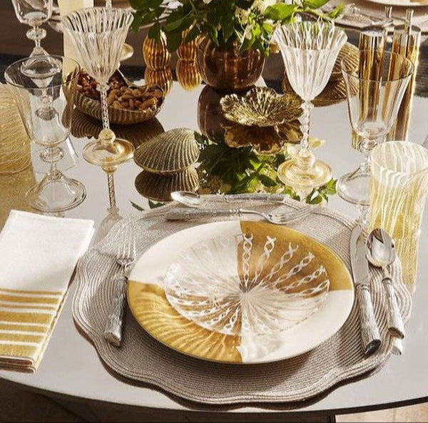 Glimmer - Round Scallop Placemat Gold / White (Set of 4)