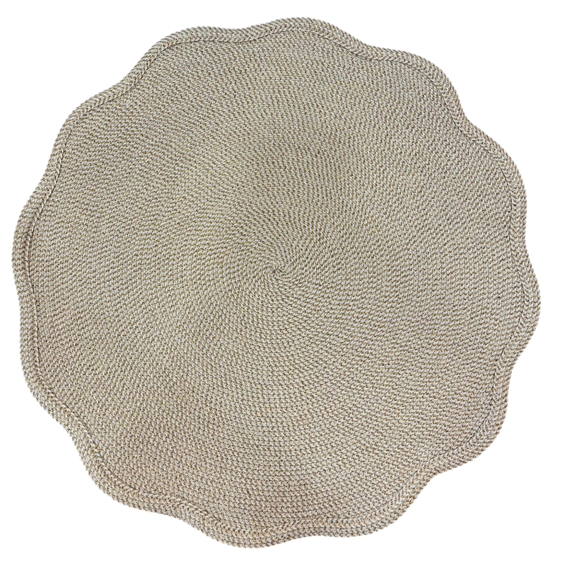 Our signature braided placemat detailed with a timeless scalloped edge. This versatile design goes from a formal table to casual lunch. Pair with classic napkins for an elegant mix.  The generous size of this mat allows room for glassware to further protect your table.