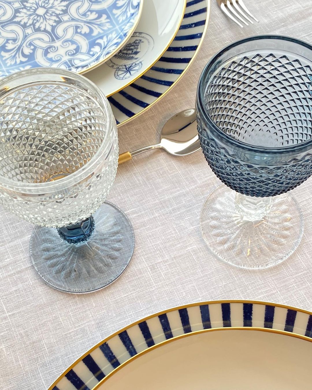 The popular Bicos glass has a new and original interpretation. Touches of colour have been added to the existing range, which alternate between stem and body, allowing for fun combinations, without this classic glass losing its sophisticated characteristics.