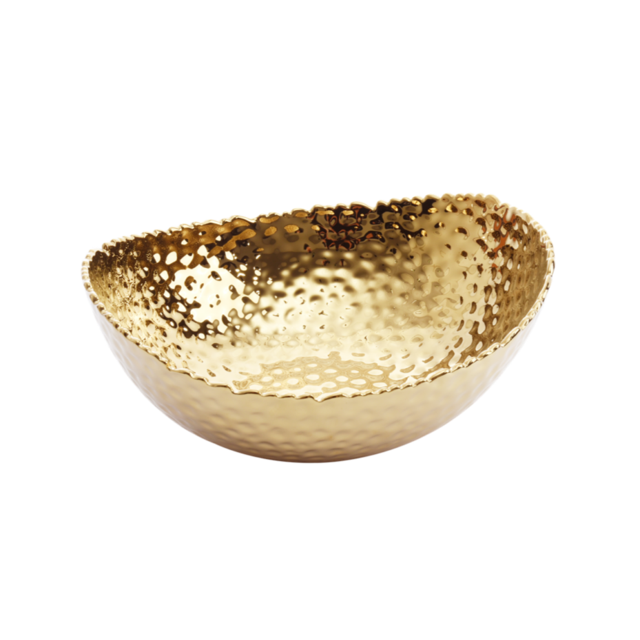 Perfect for serving a delicious garden salad, roasted potatoes and vegetables or fruit. Striking and elegant golden tone titanium finished high-fired porcelain.