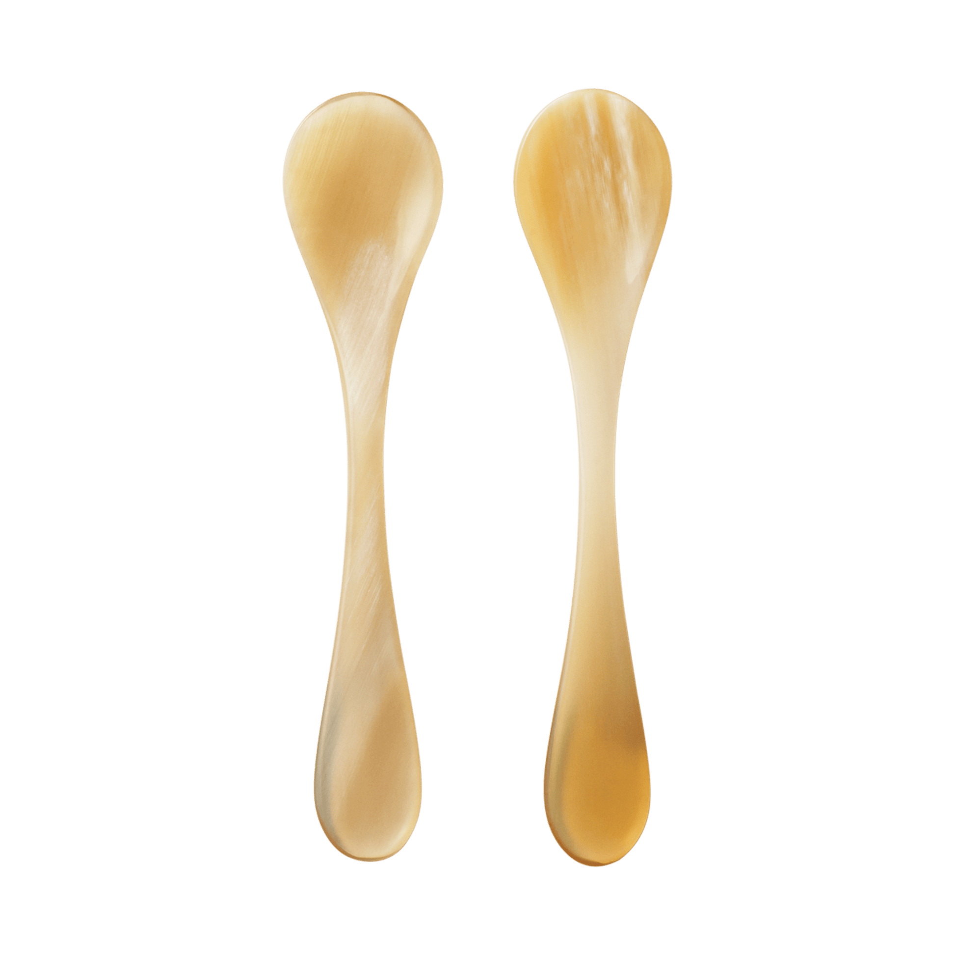 Included in a set of two, these exquisite caviar spoons serve as the ideal accompaniment to Helle Damkjær's caviar glass dish from the coveted Indulgence collection. Meticulously crafted from cow horn, renowned for preserving the delicate taste of caviar, these spoons exude a natural and refined charm. Due to the unique nature of the material, each spoon is one-of-a-kind, featuring subtle variations in colour. The spoons are not dishwasher friendly.