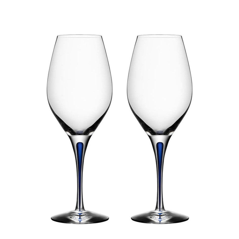 Intermezzo Balance from Orrefors was designed in 1984. The glass, which holds 14 oz, suits all kinds of wine, including white, red, and rosé. The tulip shape of the bowl brings out the flavors and aromas of the wine particularly well. Intermezzo Balance is mouthblown in Sweden by expert glassblowers and has a drop of blue sealed inside the stem – an innovation based on traditional craftsmanship. Designed by Erika Lagerbielke.