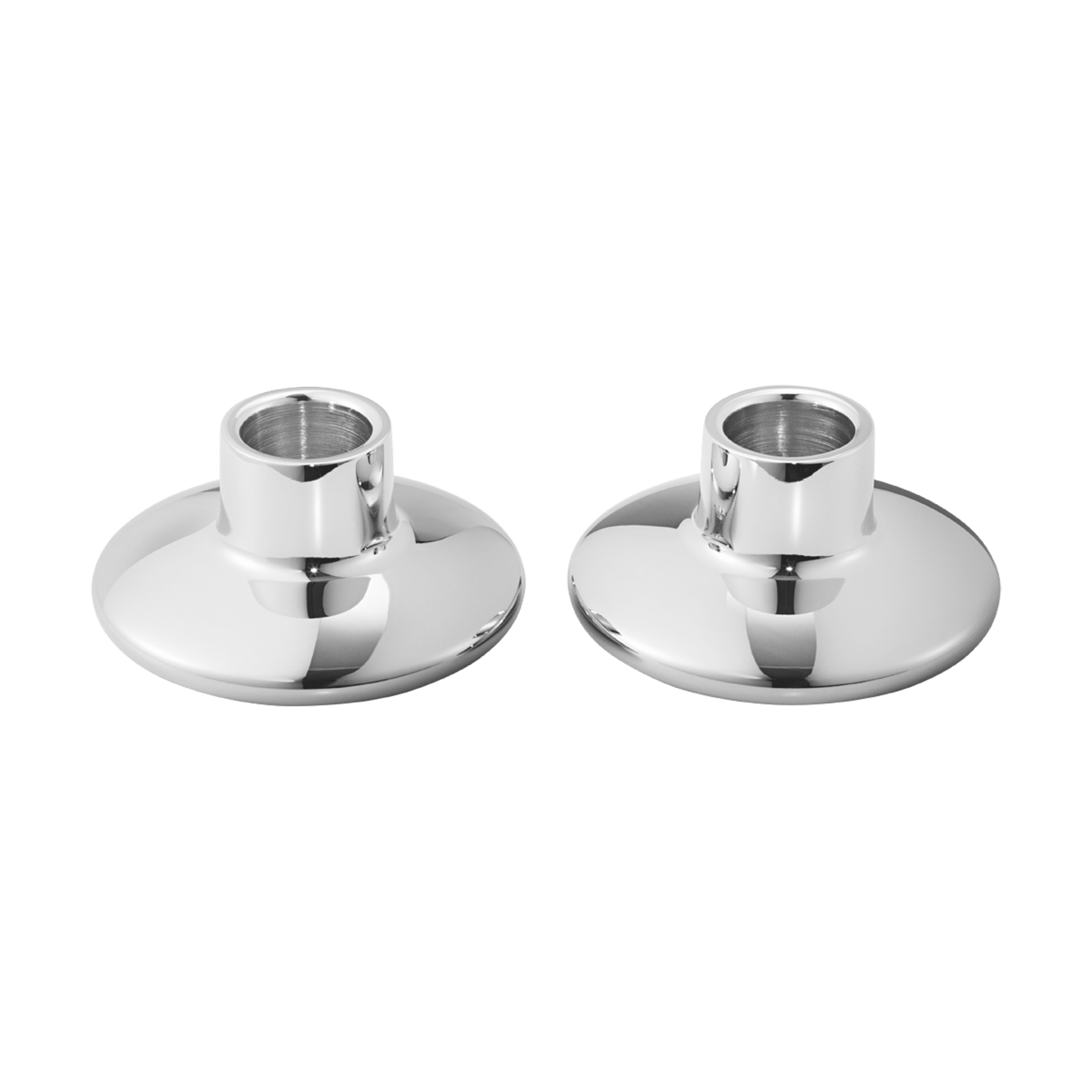 The set of two decorative candleholders are expertly crafted in mirror-polished stainless steel.