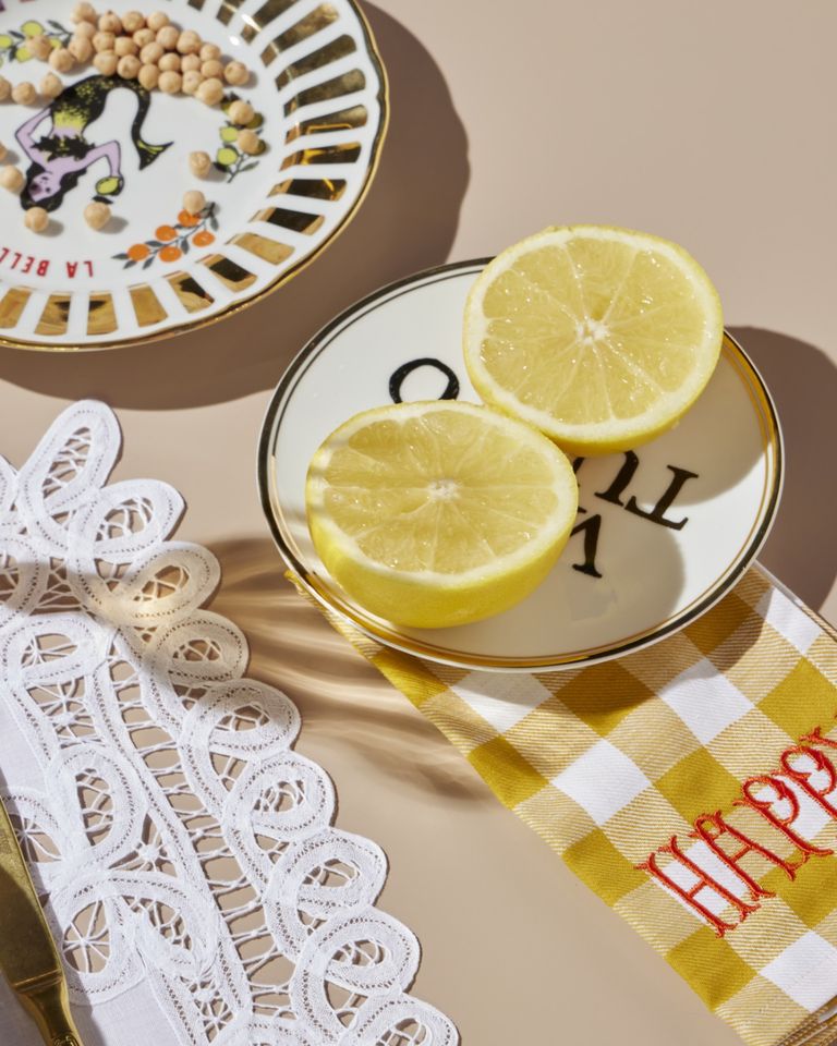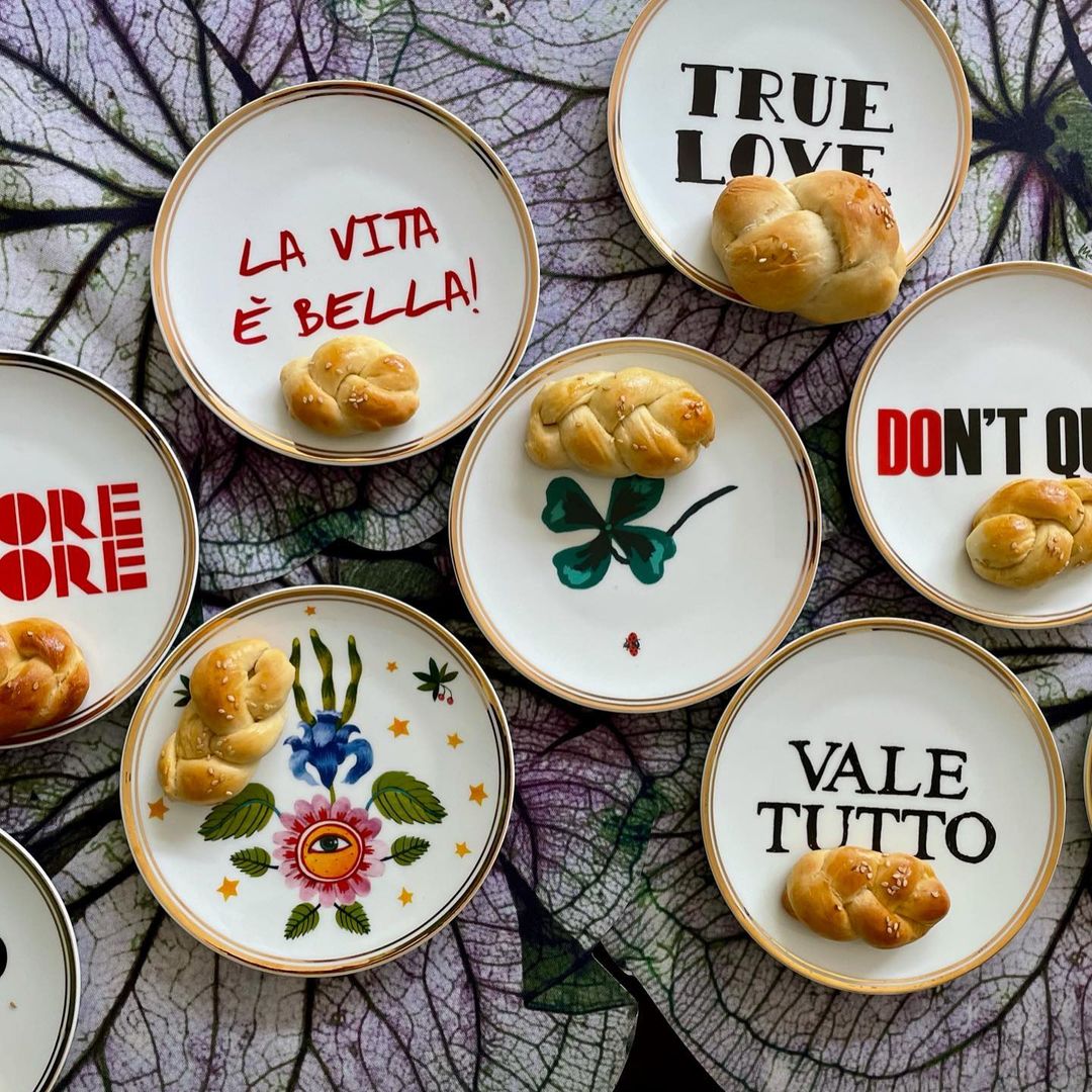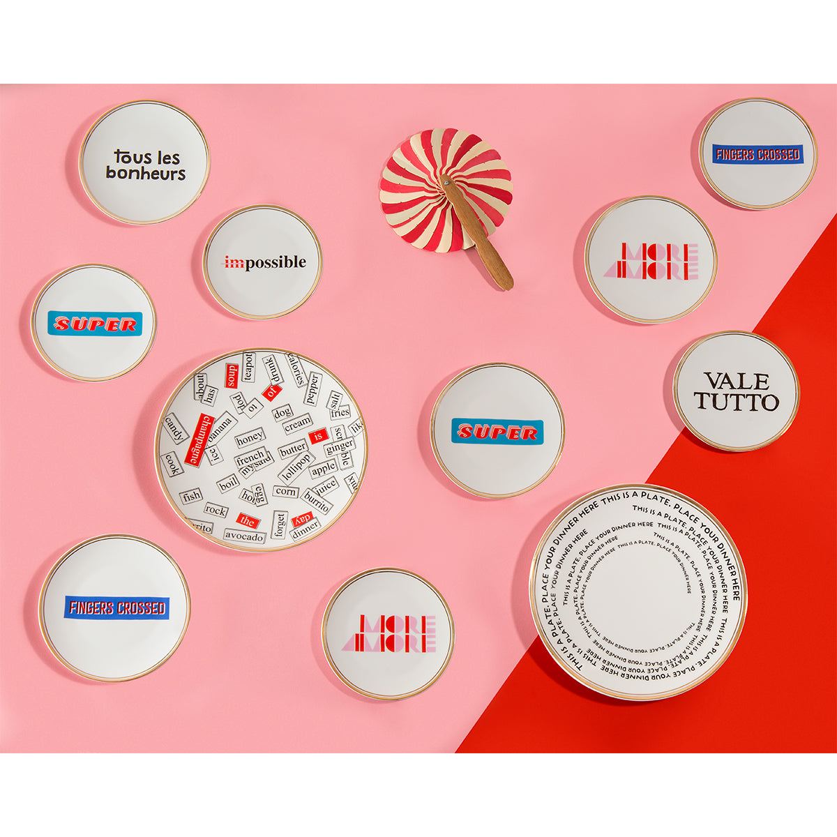 Porcelain dishes with gold rim and decal - A mini plate of La Tavola Scomposta, a collaboration series with the popular concept store Funky Table in Milan. An excellent dish that can be used as a plate, bread plate, or as a room interior.