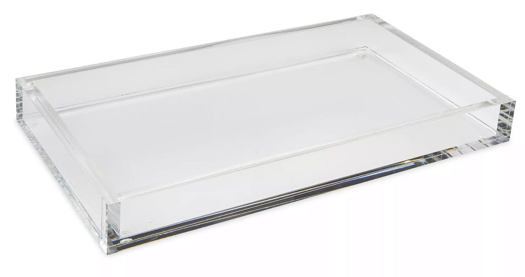 Sophisticated Minimalism! This Clear Lucite Tray is the perfect accessory for your vanity or bar. This large modern tray will complement your own personal style.