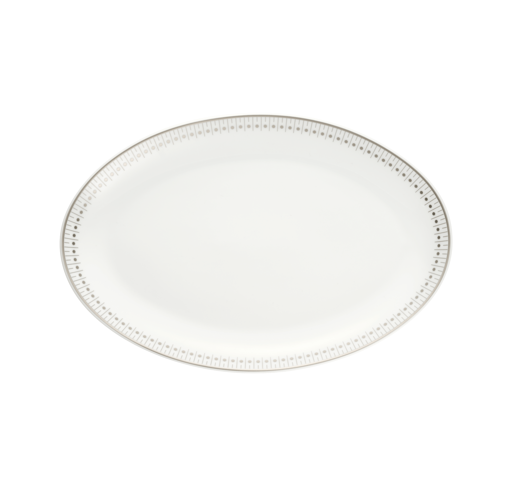 Oval platter in Limoges porcelain with platinum decoration for an elegant table setting. The decoration reinterprets the collection's signature codes.