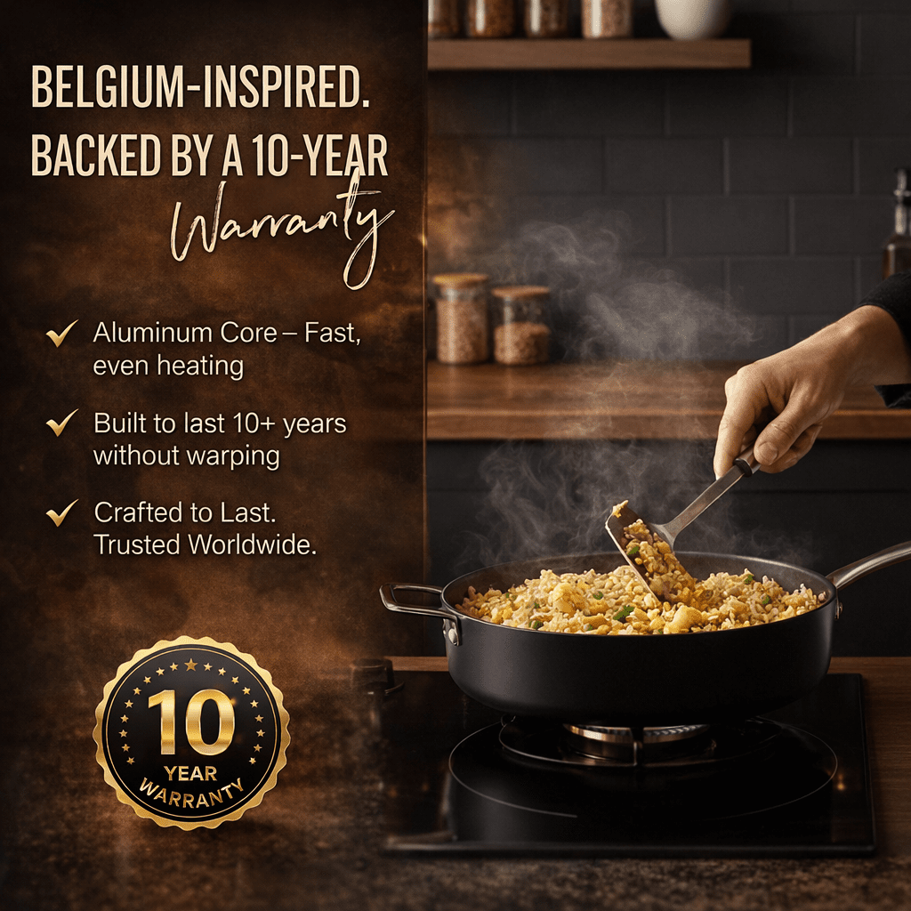 Our Belgian-crafted aluminum heats up fast and distributes heat evenly—no hot spots, no uneven browning. You’ll get perfect sears, crisp vegetables, and silky pan sauces every time.