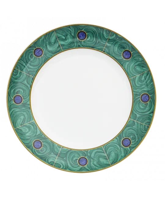 A deep green border enhanced by radiating lines is the focal point of this plate.