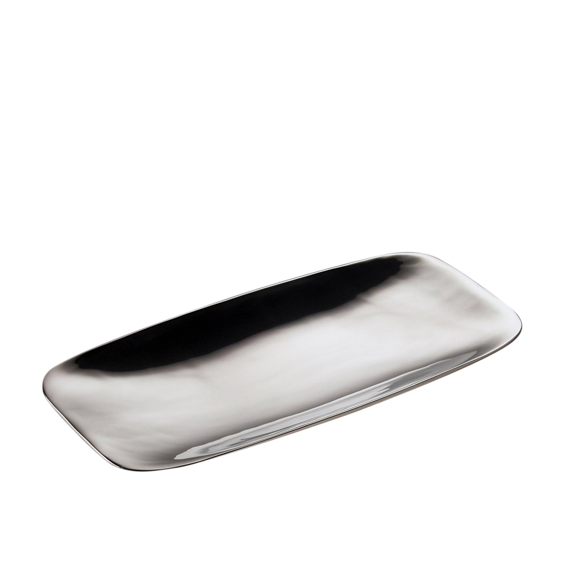 A true Nambé classic, this rectangular platter dates back to 1956, and displays the unique attention to proportion and simplicity Nambé is known for. Generously sized with rounded corners, subtly upturned sides, and a smooth broad surface the tray offers an artful base to display your meal.