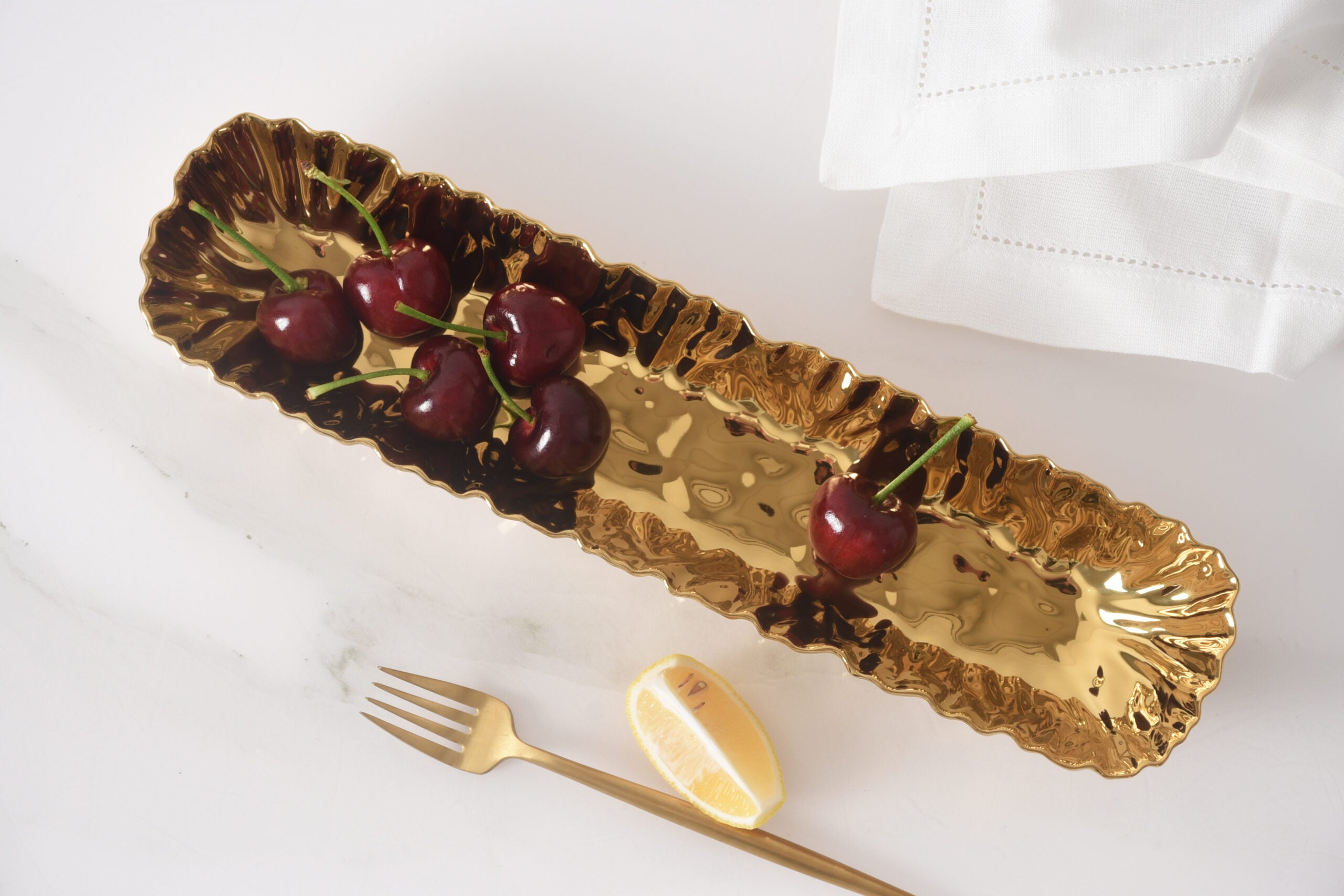 Small white and gold long tray