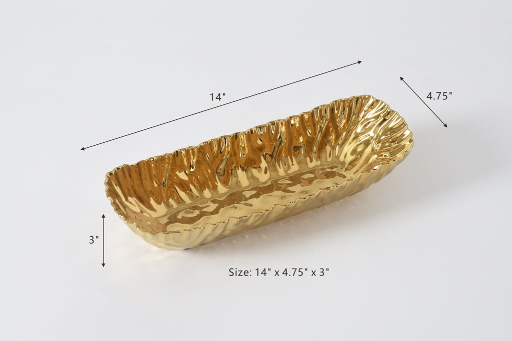 I bought this gold bowl in large as well as three smaller ones to serve appetizers, crackers, and vegetables! The large bowl will accompany it beautifully with a salad or potatoes!