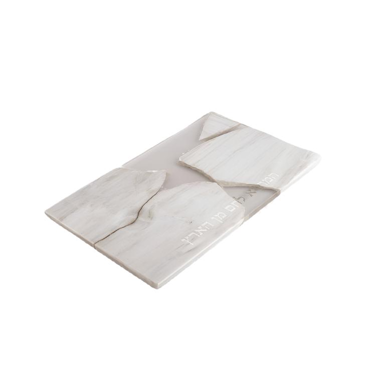 The Mutual Bread Board is a unique and stunning combination of marble and resin, symbolising the harmony between the spiritual and the material. Engraved upon the marble is the Hebrew bread blessing - make bread sprout from the earth.