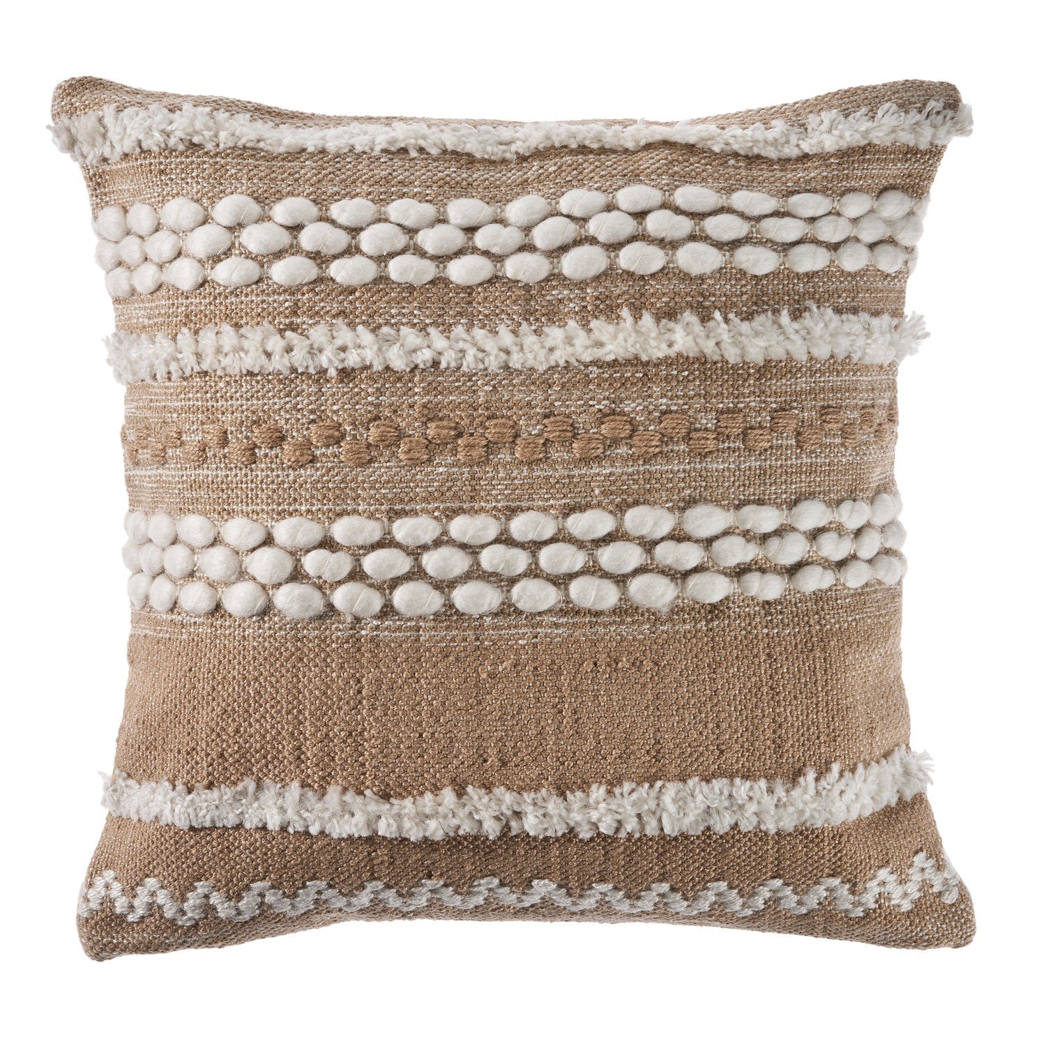Designed to thrill, our pillow collection will add intricate mastery and eye pleasing designs to any room. This particular addition dwells perfectly on a comfy couch, bed, or bench. This pillow is a wonderful neutral addition to a variety of styles. The textured portions are soft to the touch and feature intricate embroidery. Handcrafted with the customer in mind, there is no compromise of comfort and style with the pillow line we create.