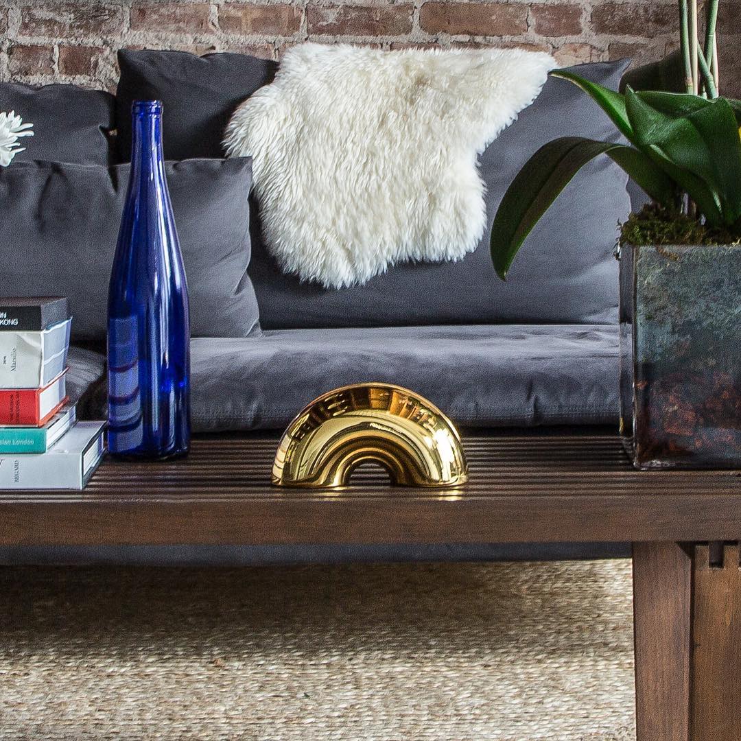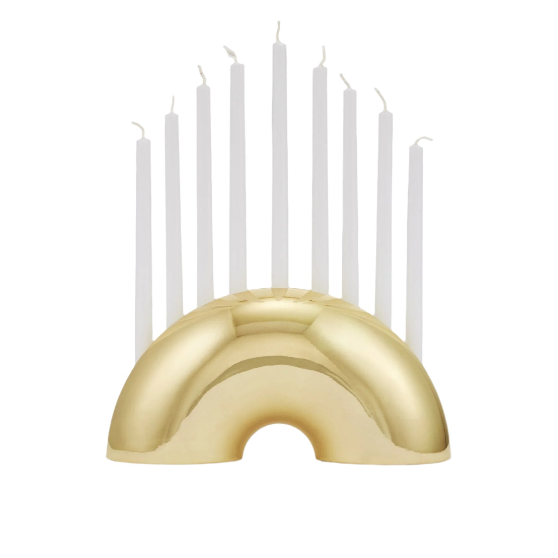 The design is inspired by our favorite Jewish culinary experience, the bagel. This brass menorah is meant to shine in your home with or without candles beyond the standard eight crazy nights.