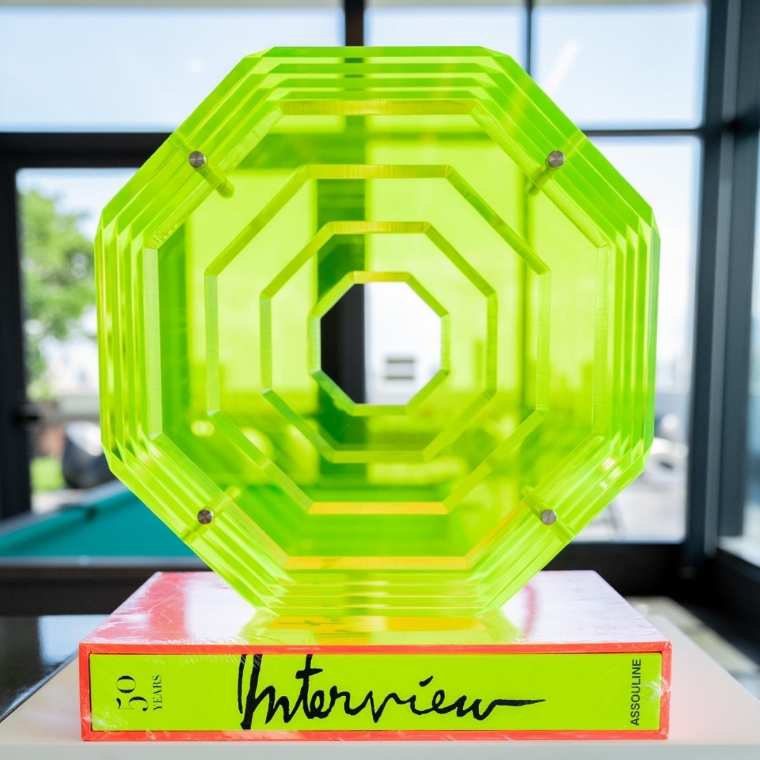 A fun play on modern! Transform your home and add a bold look to any space with our statement piece - the Octagonal Sculpture. Made of durable and colorful acrylic, these eye-catching neon sculptures will brightly stand out and are an affordable way to give any room a touch of contemporary sparkle and glow. Use them as centerpieces or as stand alones on a table or counter. They also make for a perfect housewarming, wedding or birthday gift.