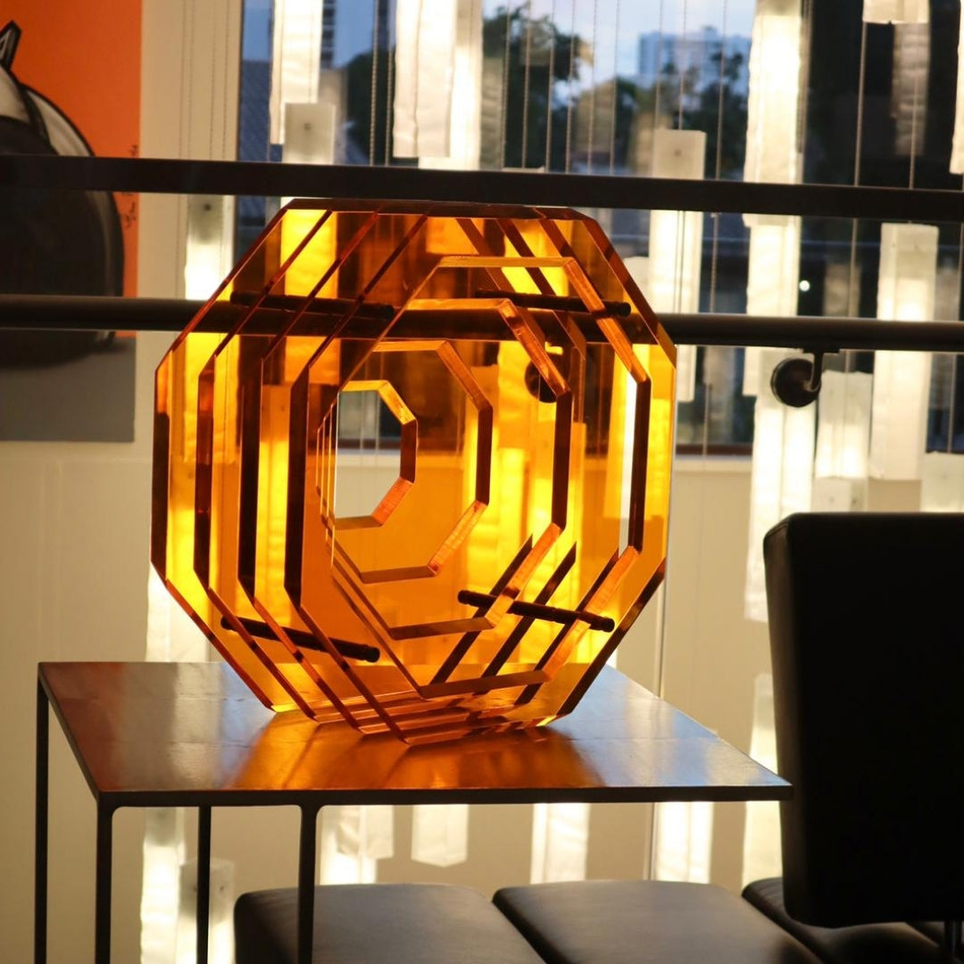 A fun play on modern! Transform your home and add a bold look to any space with our statement piece - the Octagonal Sculpture. Made of durable and colorful acrylic, these eye-catching neon sculptures will brightly stand out and are an affordable way to give any room a touch of contemporary sparkle and glow. Use them as centerpieces or as stand alones on a table or counter. They also make for a perfect housewarming, wedding or birthday gift.