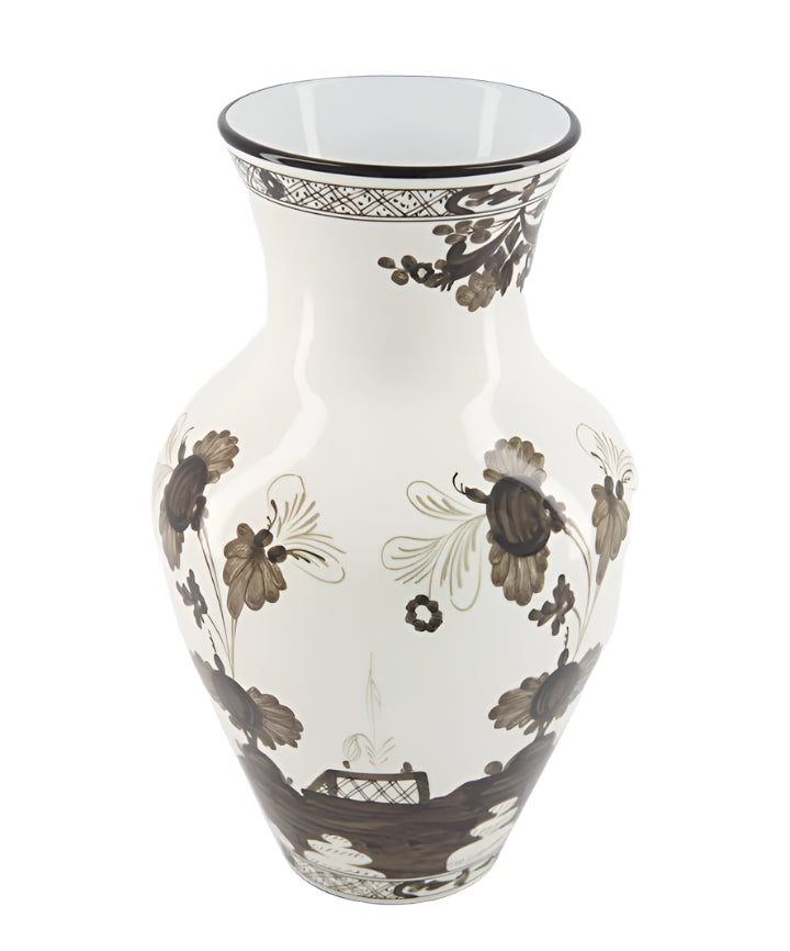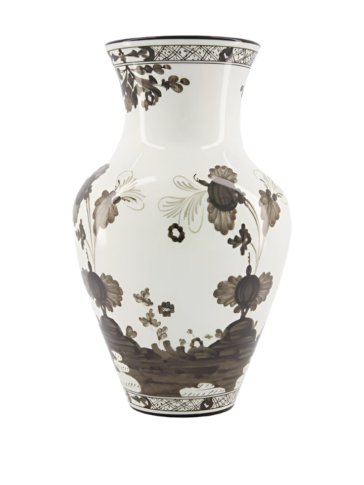 The expertise of Ginori 1735 artisans allows for the reimagining of elegant oriental designs and the creation of a collection of art pieces in which the Garofano (Carnation) stands out in contrast against fine porcelain. Designed to hold sumptuous floral arrangements as it adorns the room in combination with other items from the same collection, either in monochromatic pairings or in strikingly original color combinations. Oriente Italiano exemplifies mastery in the art of decoration and painting and is available in complete table, tea and coffee sets as well as home accessories in a variety of colors.