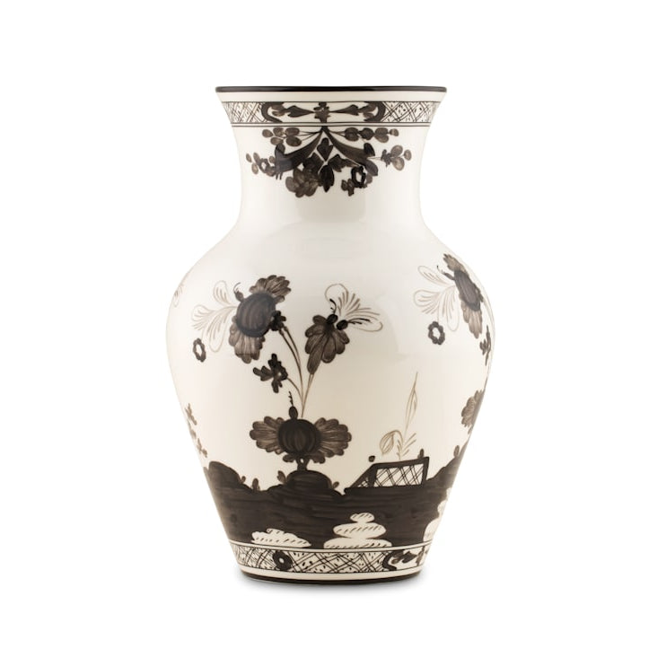 The expertise of Ginori 1735 artisans allows for the reimagining of elegant oriental designs and the creation of a collection of art pieces in which the Garofano (Carnation) stands out in contrast against fine porcelain. Designed to hold sumptuous floral arrangements as it adorns the room in combination with other items from the same collection, either in monochromatic pairings or in strikingly original color combinations. Oriente Italiano exemplifies mastery in the art of decoration and painting and is available in complete table, tea and coffee sets as well as home accessories in a variety of colors.