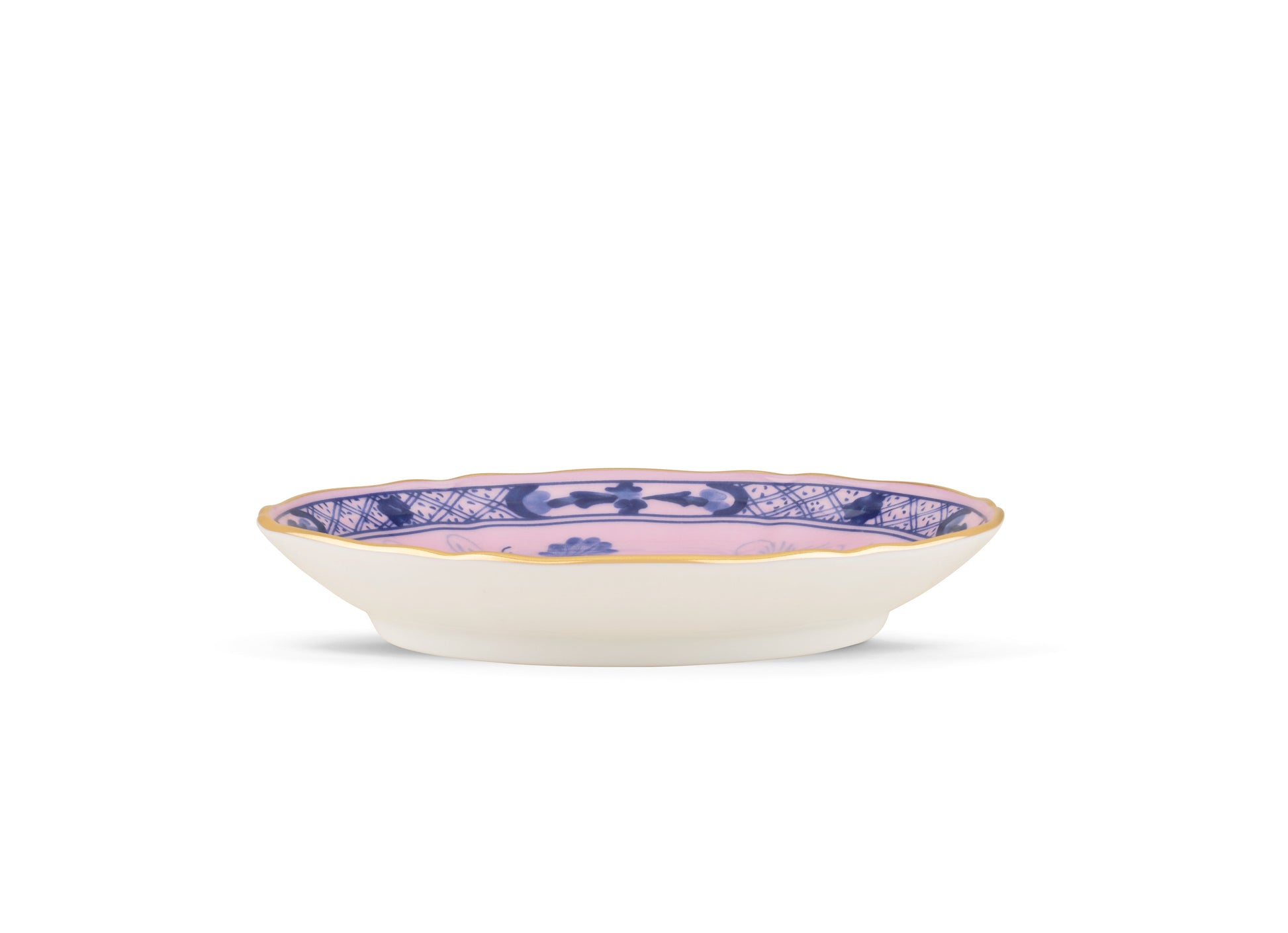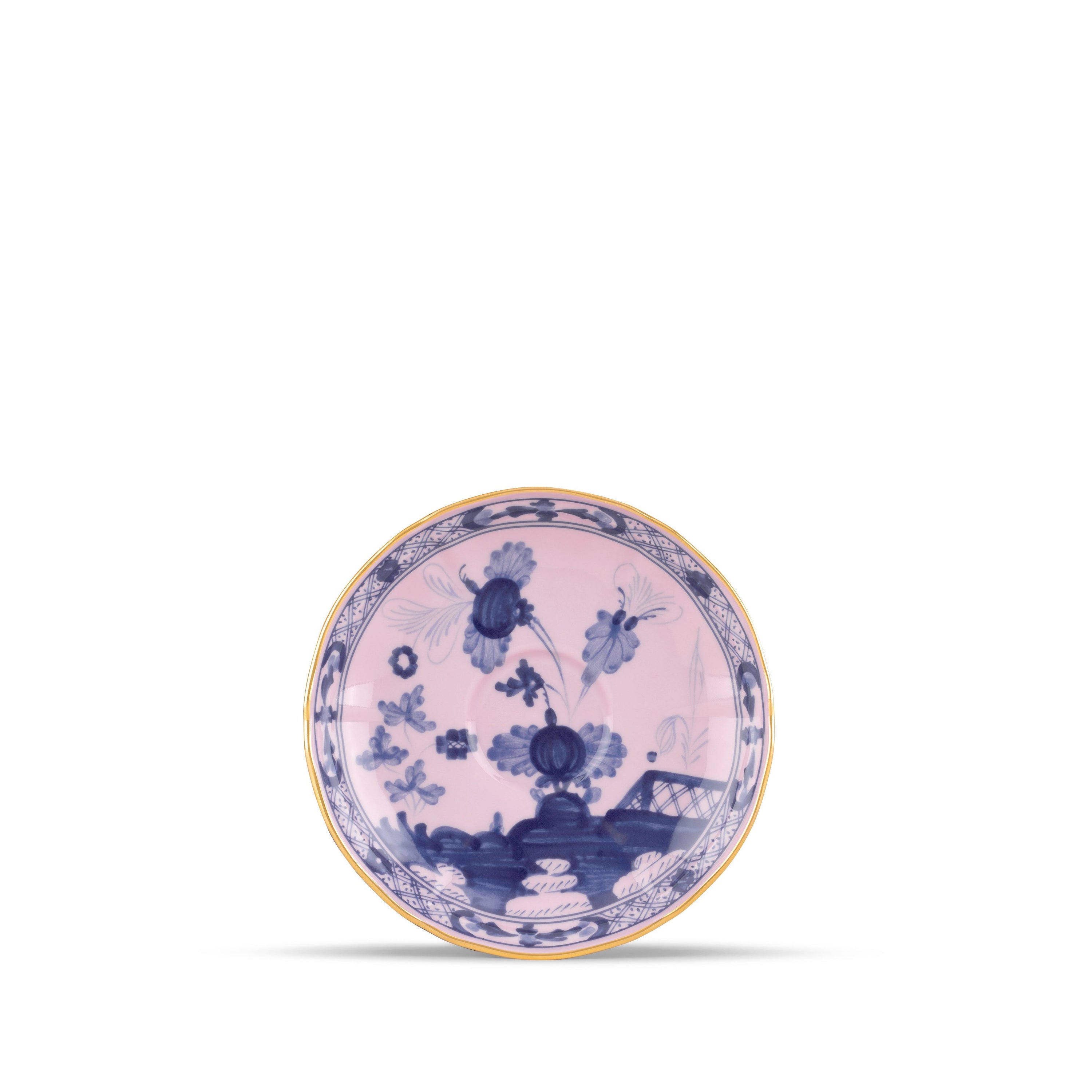 It is distinguished by the famous blue "carnation" motif that stands out in contrast to the fine porcelain entirely decorated in azalea pink. The bright hand-painted gold threading follows the lines of the historic Antico Doccia shape embellishing the entire element. Available in different shades, it complements the coffee service of the same line to match and combine in bold and original color mix & match. The Oriente Italiano collection, available in the tableware and home decor assortment, evokes atmospheres of oriental charm through Ginori 1735's history of tradition and craftsmanship.