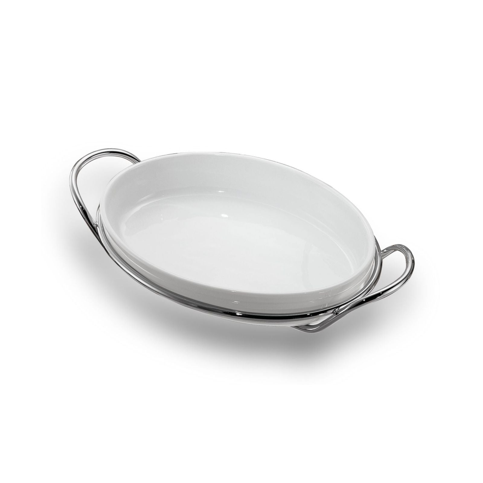 Oval Porcelain Baking Dish with finishing plated silver color. The excellent quality of the porcelain makes this baking dish perfect for cooking at any temperature. It also preserves food in the fridge. This is a must have to serve elegantly.