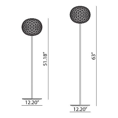 A family of lamps: suspended, for a coffee table and with a metal structure, and the most recent floor version of the lamp is available in two heights: 130 and 160 cm.