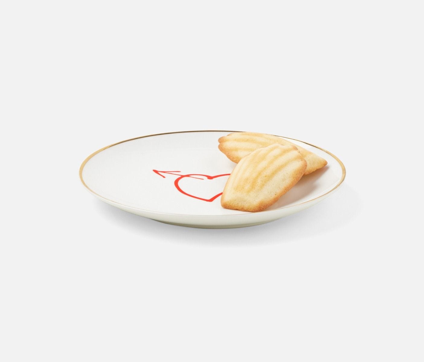 These playful, golden-rimmed plates are sure-fire conversation starters during appetizers, dessert, and every course in between. Choose from five charming phrases—Bonjour, Bon Appetit, Hello Beautiful, Love, and Thank You—or a romantic heart-and-arrow illustration.