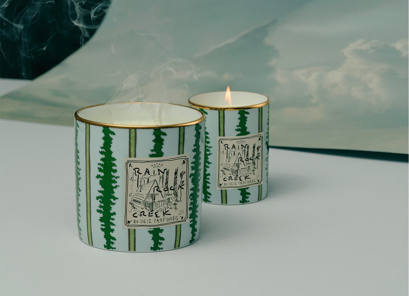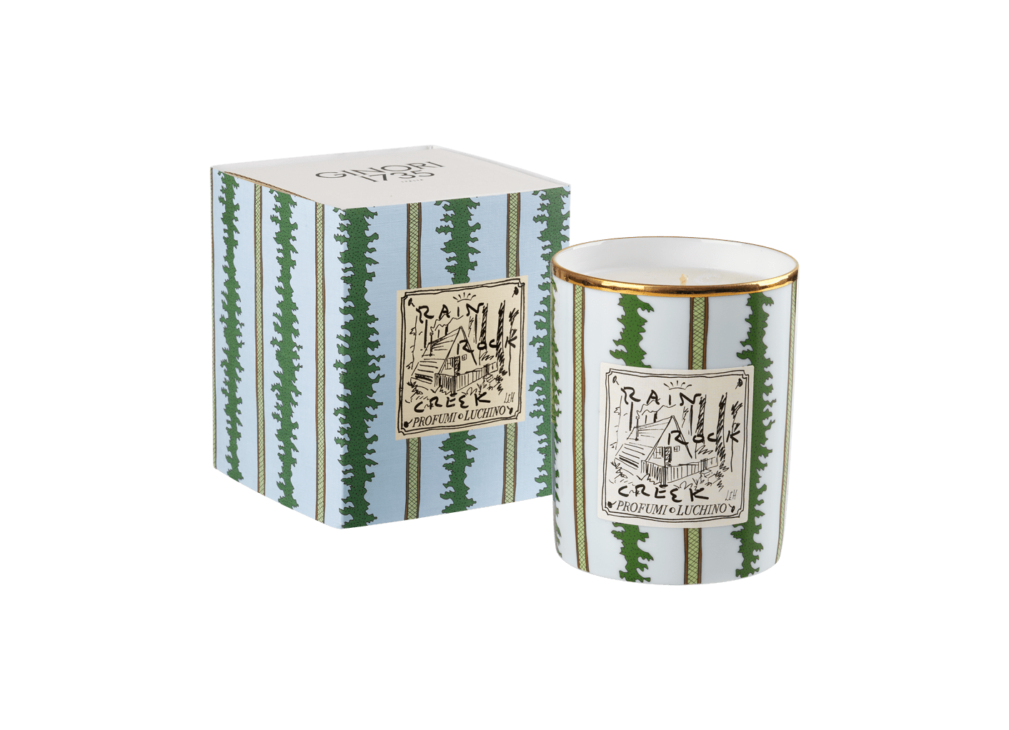 Rain Rock Creek designer scented candle, with a pure porcelain body and a burning time of about 30 hours.