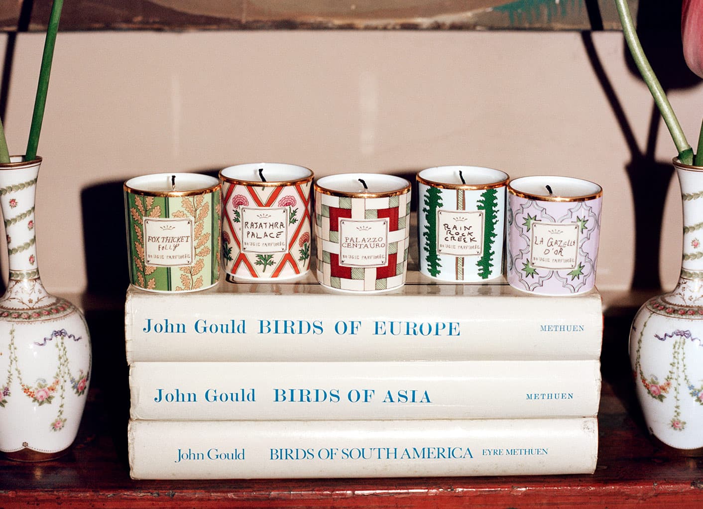 Set of 5 small designer scented candles with all the fragrances of the collection: Fox Thicket Folly, La Gazelle d’Or, Rajathra Palace, Rain Rock Creek e Palazzo Centauro.